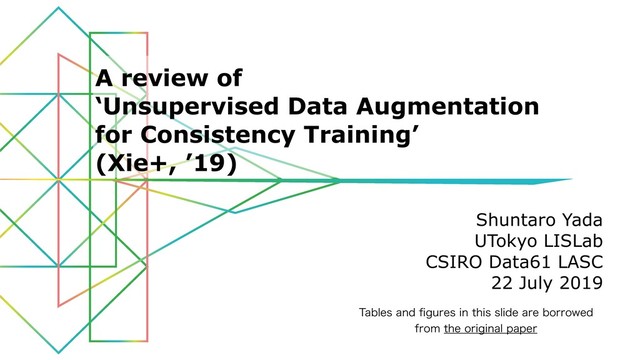 with only a few labels (just 20 samples) – Scores of multi-label tasks still have a gap in comparison to the SOTA scores • An unexpected finding here is that BERTFINETUNE alone can improve the result very much even in a small data size – Compare the computational cost of LM fine-tuning vs. data augmentation 20 (Xie+, ’19) Experimental results Main results. The results for text classification are shown in Table 1 with three key observations. • Firstly, UDA consistently improves the performance regardless of the model initialization scheme. Most notably, even when BERT is further finetuned on in-domain data, UDA can still significantly reduce the error rate from 6.50% to 4.20% on IMDb. This result shows that the benefits UDA provides are complementary to that of representation learning. • Secondly, with a significantly smaller amount of supervised examples, UDA can offer decent or even competitive performances compared to the SOTA model trained with full supervised data. In particular, on binary sentiment classification tasks, with only 20 supervised examples, UDA outperforms the previous SOTA trained on full supervised data on IMDb and gets very close on Yelp-2 and Amazon-2. • Finally, we also note that five-category sentiment classification tasks turn out to be much more difficult than their binary counterparts and there still exists a clear gap between UDA with 500 labeled examples per class and BERT trained on the entire supervised set. This suggests a room for further improvement in the future. Fully supervised baseline Datasets IMDb Yelp-2 Yelp-5 Amazon-2 Amazon-5 DBpedia (# Sup examples) (25k) (560k) (650k) (3.6m) (3m) (560k) Pre-BERT SOTA 4.32 2.16 29.98 3.32 34.81 0.70 BERTLARGE 4.51 1.89 29.32 2.63 34.17 0.64 Semi-supervised setting Initialization UDA IMDb Yelp-2 Yelp-5 Amazon-2 Amazon-5 DBpedia (20) (20) (2.5k) (20) (2.5k) (140) Random 7 43.27 40.25 50.80 45.39 55.70 41.14 3 25.23 8.33 41.35 16.16 44.19 7.24 BERTBASE 7 27.56 13.60 41.00 26.75 44.09 2.58 3 5.45 2.61 33.80 3.96 38.40 1.33 BERTLARGE 7 11.72 10.55 38.90 15.54 42.30 1.68 3 4.78 2.50 33.54 3.93 37.80 1.09 BERTFINETUNE . 7 6.50 2.94 32.39 12.17 37.32 - 3 4.20 2.05 32.08 3.50 37.12 - Table 1: Error rates on text classification datasets. In the fully supervised settings, the pre-BERT SOTAs include ULMFiT [26] for Yelp-2 and Yelp-5, DPCNN [29] for Amazon-2 and Amazon-5, Mixed VAT [51] for IMDb and DBPedia. Results with different labeled set sizes. We also evaluate the performance of UDA with different numbers of supervised examples. As shown in Figure 4, UDA leads to consistent improvements for all labeled set sizes. In the large-data regime, with the full training set of IMDb, UDA also provides robust gains. On Yelp-2, with 2, 000 examples, UDA outperforms the previous SOTA model trained with 560, 000 examples. 3