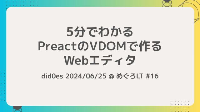 5分でわかる PreactのVDOMで作る Webエディタ did0es 2024/06/25 @ めぐろLT #16