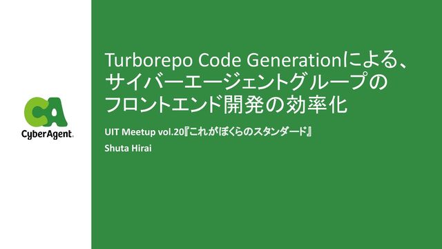 JS/TSのプロジェクトで、ビルドシステムやmonorepoの構築に用いられるTurborepoには、Code Generationという機能が存在します。 この機能を活用した、人為的ミスの防止や開発リソースの削減など、実際にサイバーエージェントグループの開発現場で行われている取り組みについてお話します。