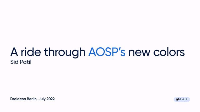 in Berlin Built Paytm, a mobile payments platform in India, ~ 100m users Organizes and hosts communities like Kotlin Mumbai & Android Worldwide Know more at siddroid.com A ride through AOSP’s new colors!