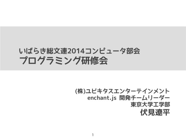 いばらき総文連2014コンピュータ部会 プログラミング研修会 後半戦 (株)ユビキタスエンターテインメント enchant.js 開発チームリーダー 東京大学工学部 伏見遼平