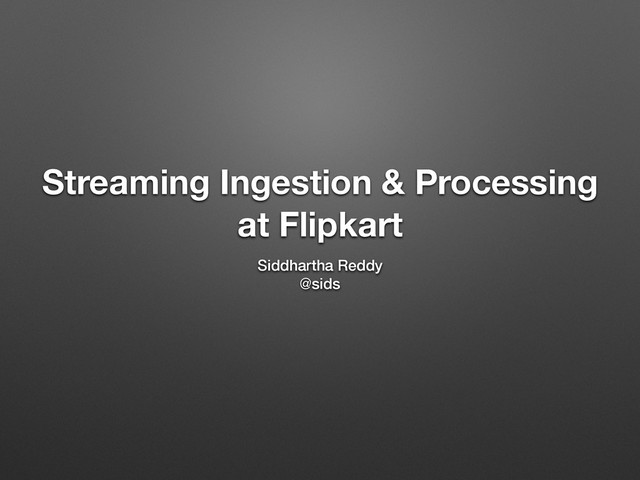 Streaming Ingestion & Processing at Flipkart Siddhartha Reddy @sids