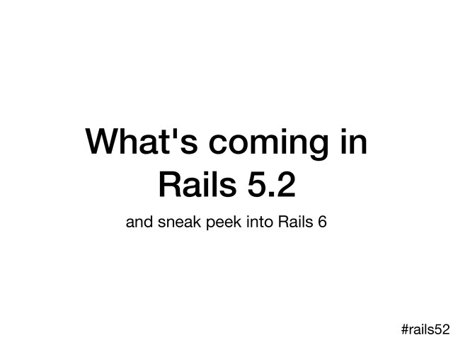 The next minor version of Ruby on Rails is right around the corner! Let's look at those new features that are coming in the next few weeks to Rails 5.2, and sneak peek into those new features that will come in Rails 6.0, the next major release of Rails.