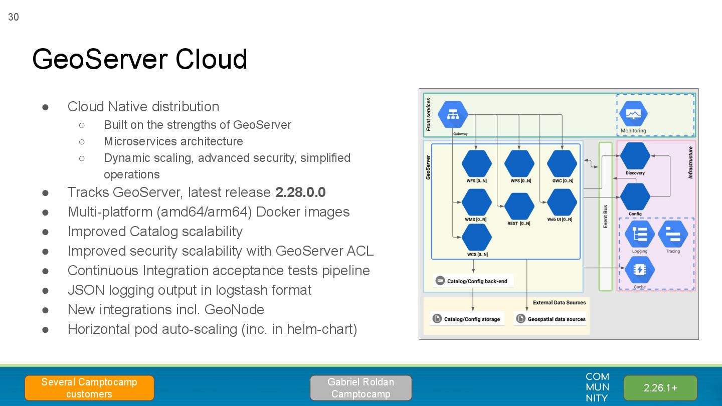 In this presentation you will have the opportunity to see all the new features of the latest major release 2.28, discover what is coming in the near future, and interact with the core developers of GeoServer.