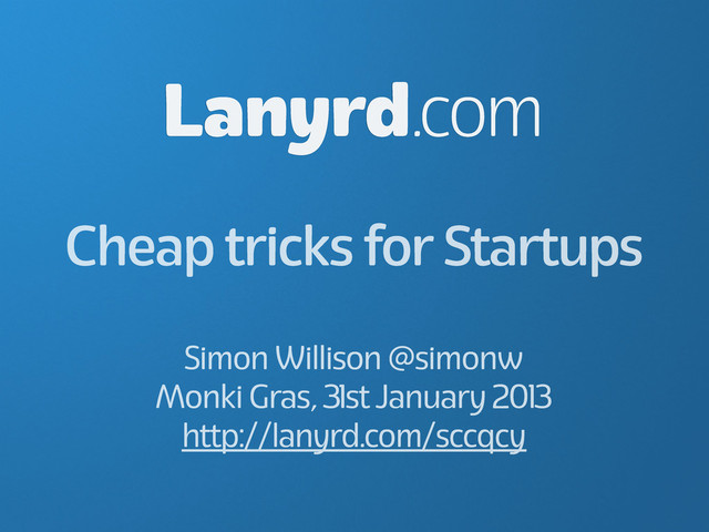 Cheap tricks for Startups Lanyrd.com Simon Willison @simonw Monki Gras,