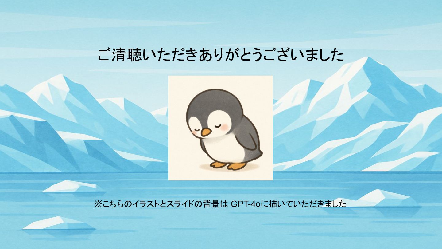 ご清聴いただきありがとうございました ※こちらのイラストとスライドの背景は GPT-4oに描いていただきました