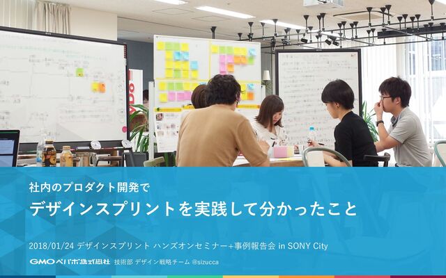 2018/01/24 デザインスプリント ハンズオンセミナー + 事例報告会 in SONY City「社内のプロダクト開発でデザインスプリントを実践して分かったこと」の登壇資料。