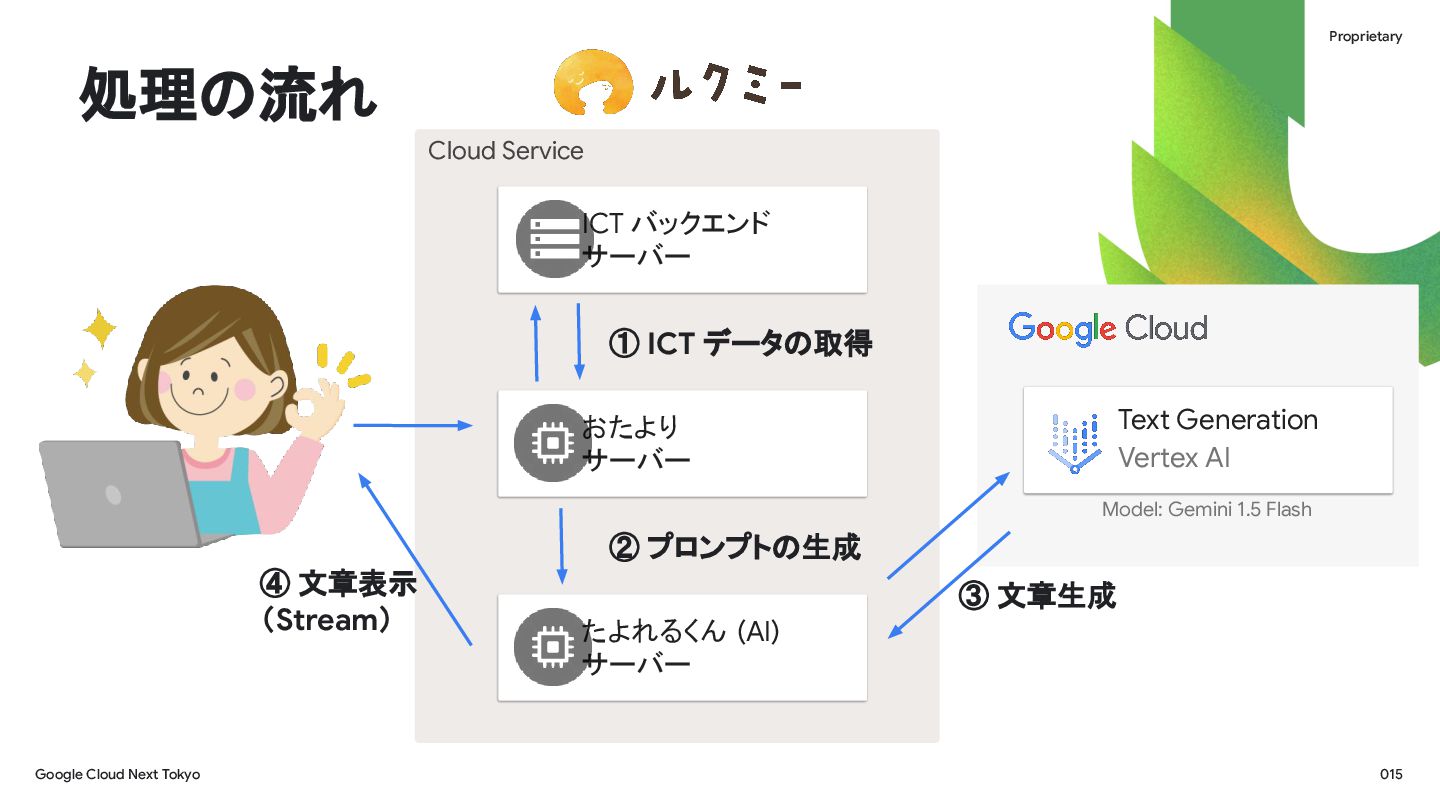 Proprietary 015 Google Cloud Next Tokyo 処理の流れ Cloud Service おたより