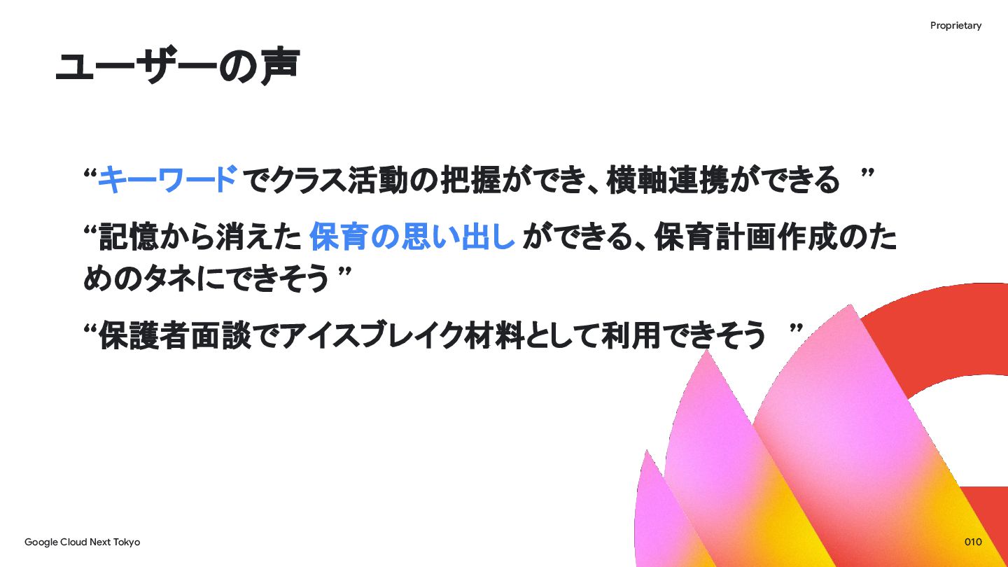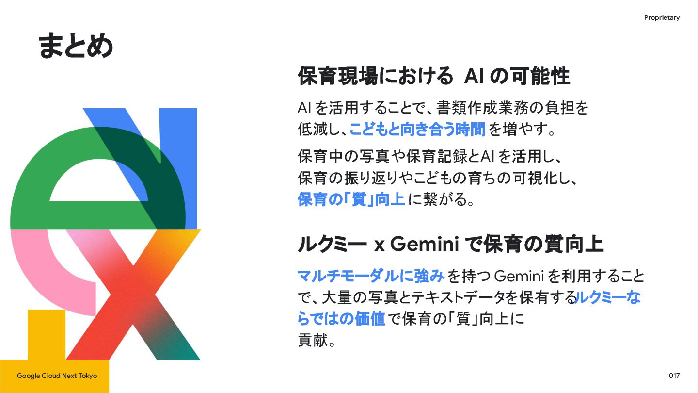 Proprietary 017 Google Cloud Next Tokyo まとめ 保育現場における AI の可能性