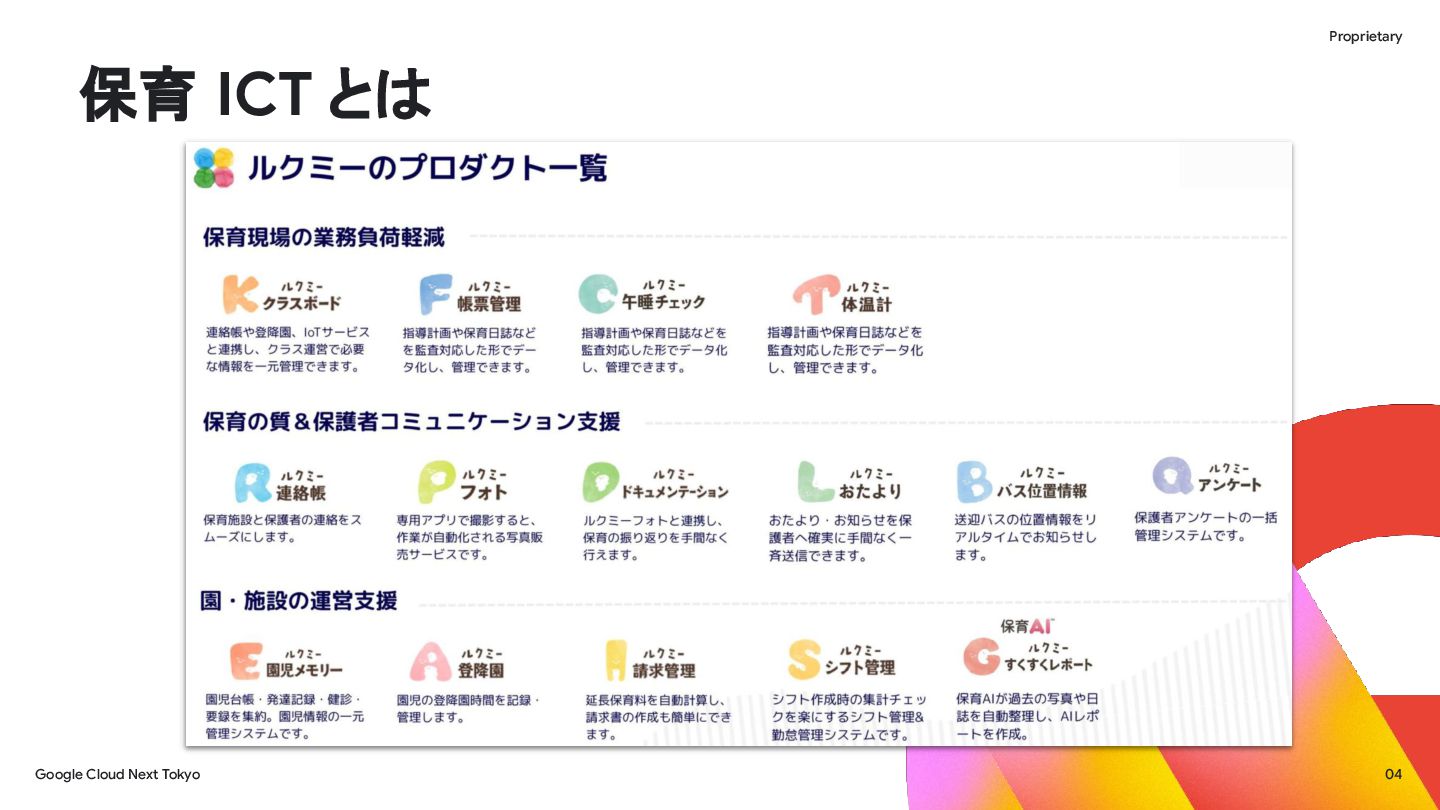 Proprietary 04 Google Cloud Next Tokyo 保育 ICT とは