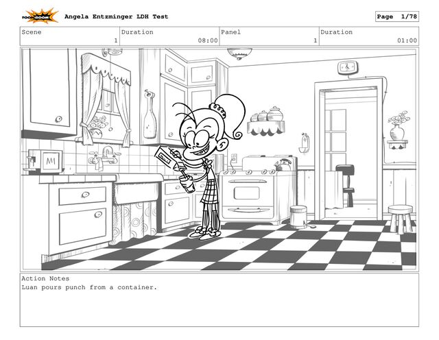 <SCREAMS> Action Notes Luan pulls out a boxing glove on a spring and fires it. WHAPAM! Lincoln goes flying into the fridge and slides to the floor. Angela Entzminger LDH Test Page 32/78