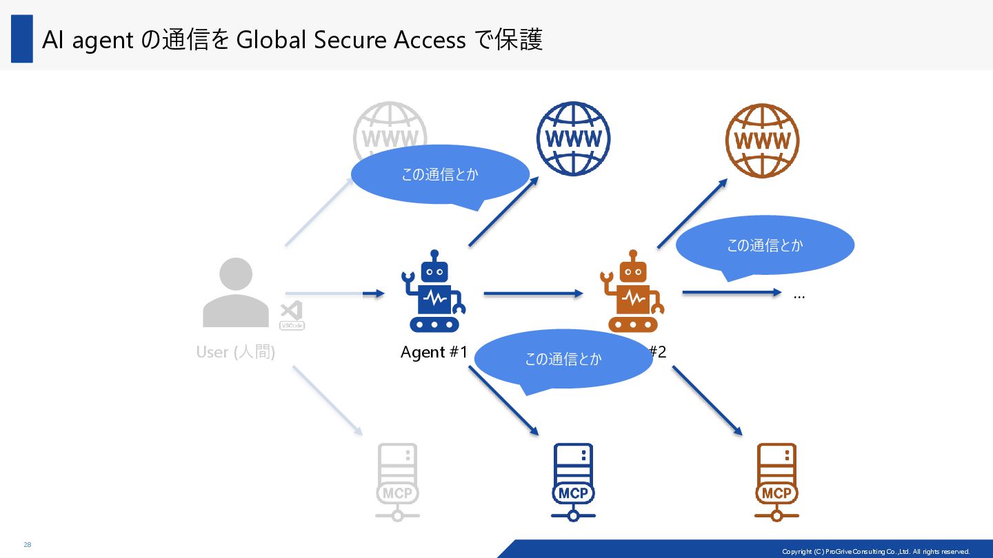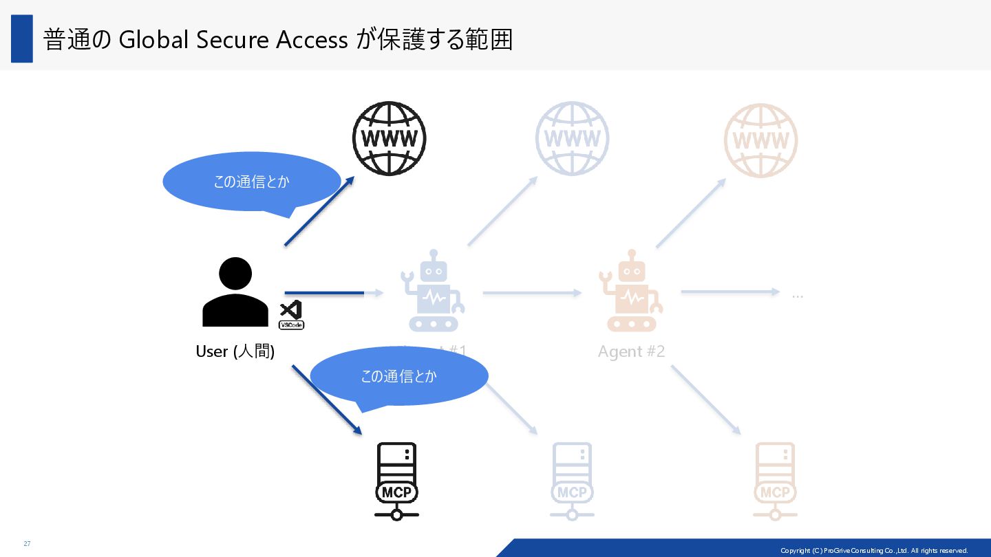 admin center と Microsoft Entra admin center 26 ◼ Microsoft Copilot Studio で定義した agent の保護 ⁻ Microsoft Entra admin center で定義した Web content filtering policies で保護する ⁻ Copilot Studio エージェントに対するグローバルなセキュアアクセス (プレビュー) - Power Platform | Microsoft Learn ◼ ここからの発展 ⁻ Data loss prevention policies を利用して AI agent が外部に持ち出してしまうリスクの低減