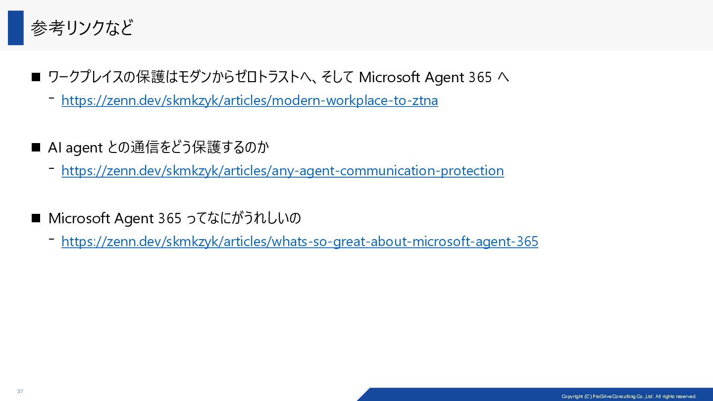 ◼ BRK306: Innovation Session: Introducing Microsoft Agent 365: the Control Plane for AI Agents ⁻ https://ignite.microsoft.com/en-US/sessions/BRK306 ⁻ https://www.youtube.com/watch?v=-LSrJtikrh8 ◼ BRK269: Explore Microsoft Agent 365 security and governance capabilities ⁻ https://ignite.microsoft.com/en-US/sessions/BRK269 ⁻ https://www.youtube.com/watch?v=RsCz57M2SMc ◼ BRK298: Power agents to scale your frontier workforce with Agent 365 ⁻ https://ignite.microsoft.com/en-US/sessions/BRK298 ⁻ https://www.youtube.com/watch?v=Dv7J7xM9nKY ◼ BRK305: Build A365-Ready Agents for the Enterprise ⁻ https://ignite.microsoft.com/en-US/sessions/BRK305 ⁻ https://www.youtube.com/watch?v=gdi95CKeQL4 ppt の資料は Microsoft Ignite の ページでしか手に入らない~