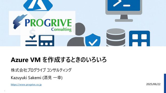 株式会社プログライブ コンサルティング Kazuyuki Sakemi (酒見 一幸) Azure VM を作成するときのいろいろ 2025/06/22 1