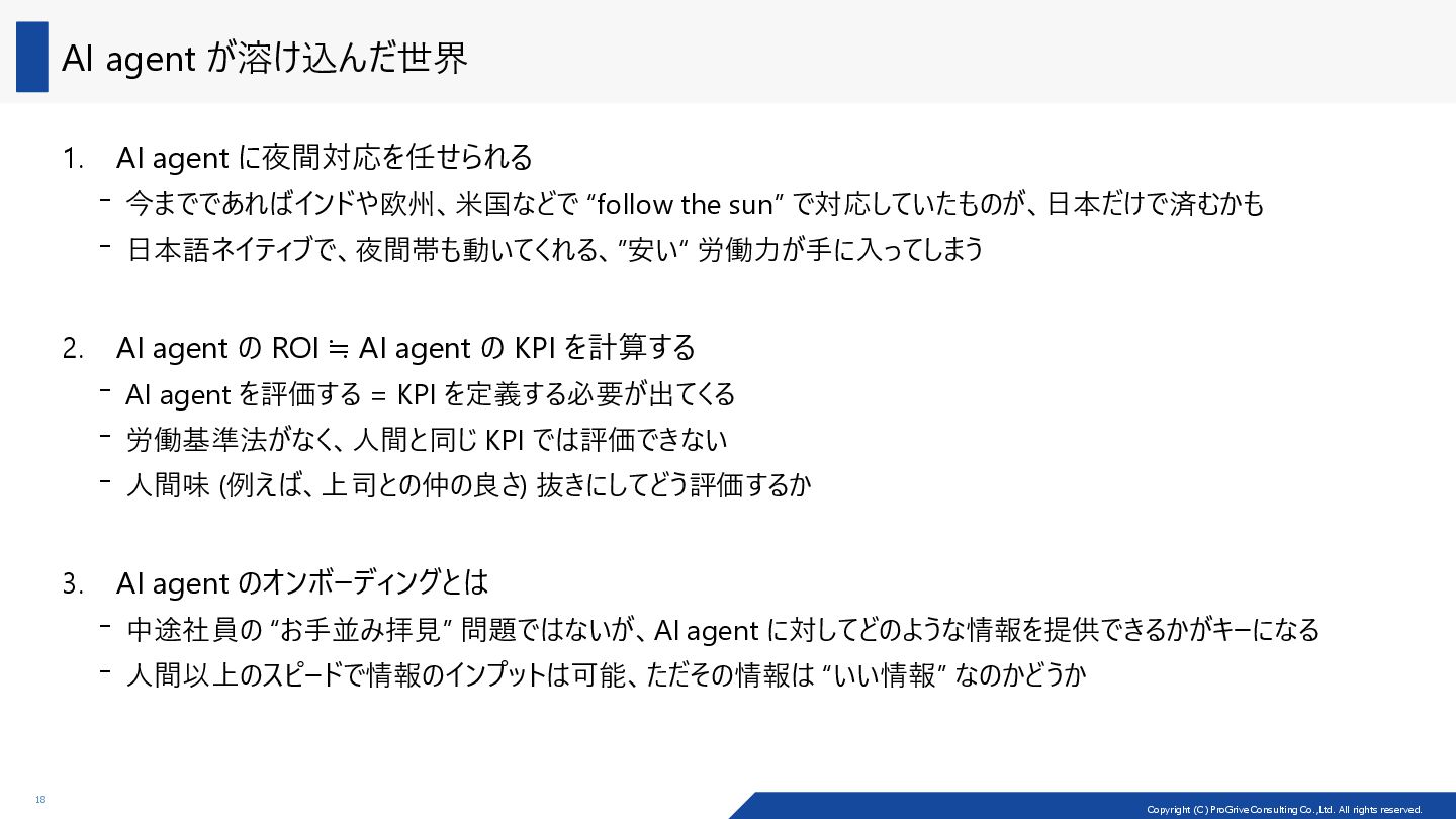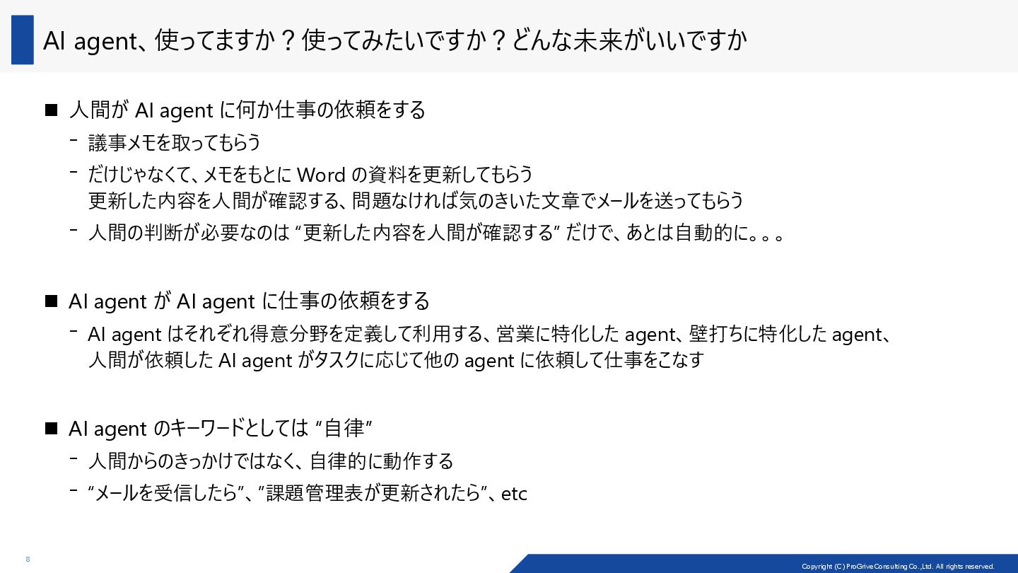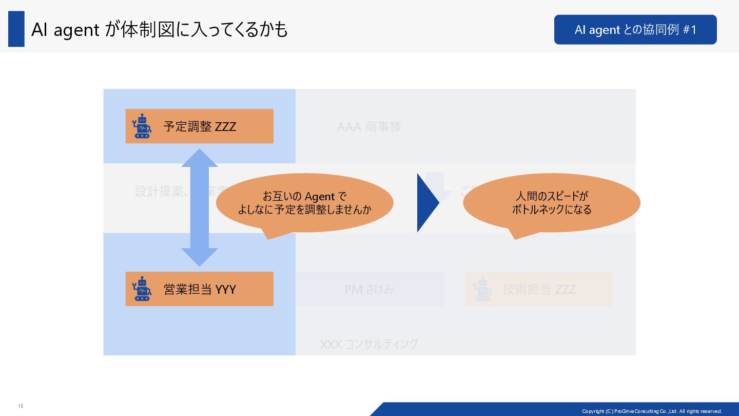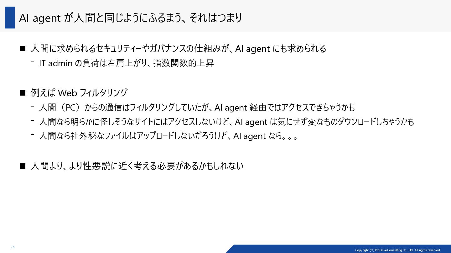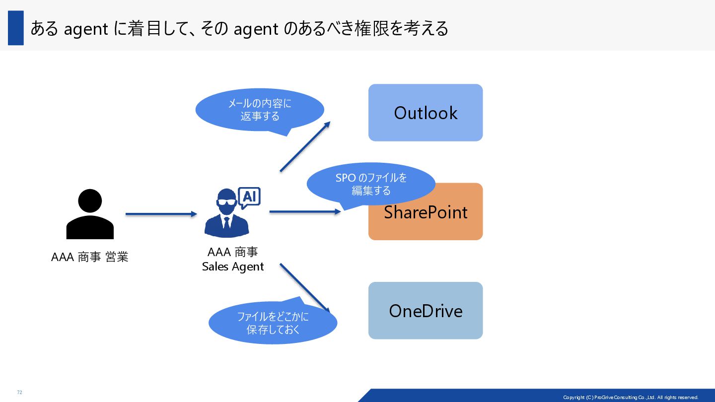 を振る、AI agent にも ID を振る 40 ◼ Microsoft Entra Agent ID ⁻ エージェントIDの自動作成と割り当て(プレビュー) - Microsoft Copilot Studio | Microsoft Learn ◼ ID を持っているなら? ⁻ メールの宛先に AI agent を指定できる ⁻ Team の @ メンションで AI agent を指定できる ⁻ これらのイベントをトリガーに AI agent が自律的に動作する ⁻ 条件付きアクセスの条件にも設定できる!