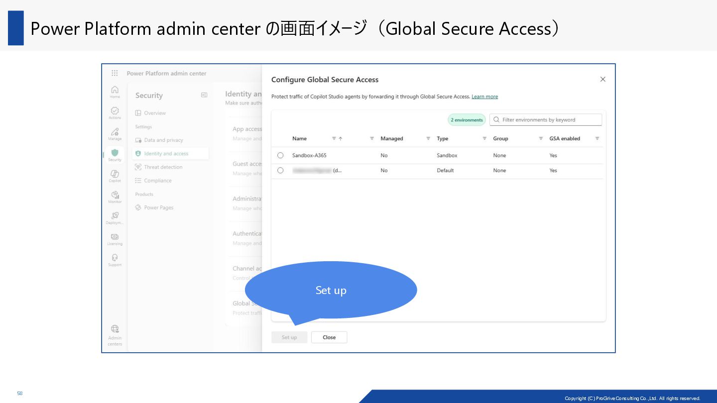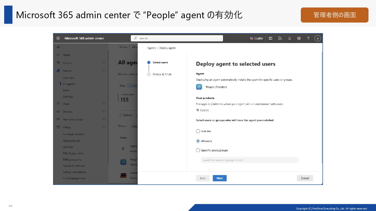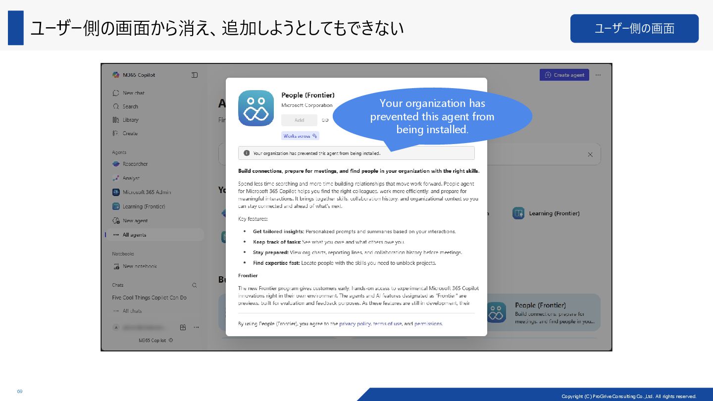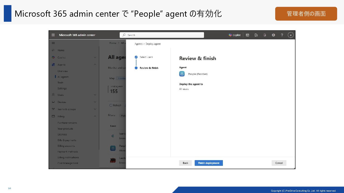 admin center と Microsoft Entra admin center 54 ◼ Microsoft Copilot Studio で定義した agent の保護 ⁻ Microsoft Entra admin center で定義した Web content filtering policies で保護する ⁻ Copilot Studio エージェントに対するグローバルなセキュアアクセス (プレビュー) - Power Platform | Microsoft Learn ◼ ここからの発展 ⁻ Data loss prevention policies を利用して AI agent が外部に持ち出してしまうリスクの低減