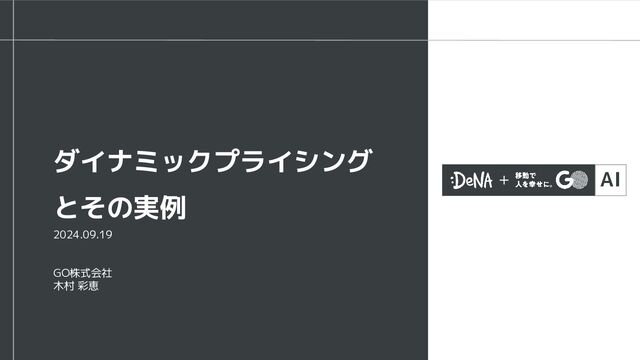 AI 2024.09.19 GO株式会社 木村 彩恵 ダイナミックプライシング とその実例