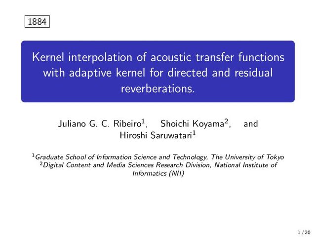 for directed and residual reverberations. Juliano G. C. Ribeiro1, Shoichi Koyama2, and Hiroshi Saruwatari1 1Graduate School of Information Science and Technology, The University of Tokyo 2Digital Content and Media Sciences Research Division, National Institute of Informatics (NII) 1 / 20