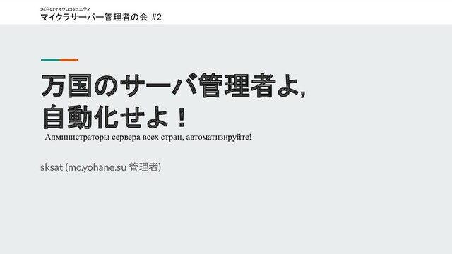 万国のサーバ管理者よ, 自動化せよ! sksat (mc.yohane.su 管理者) Администраторы сервера всех стран, автоматизируйте!