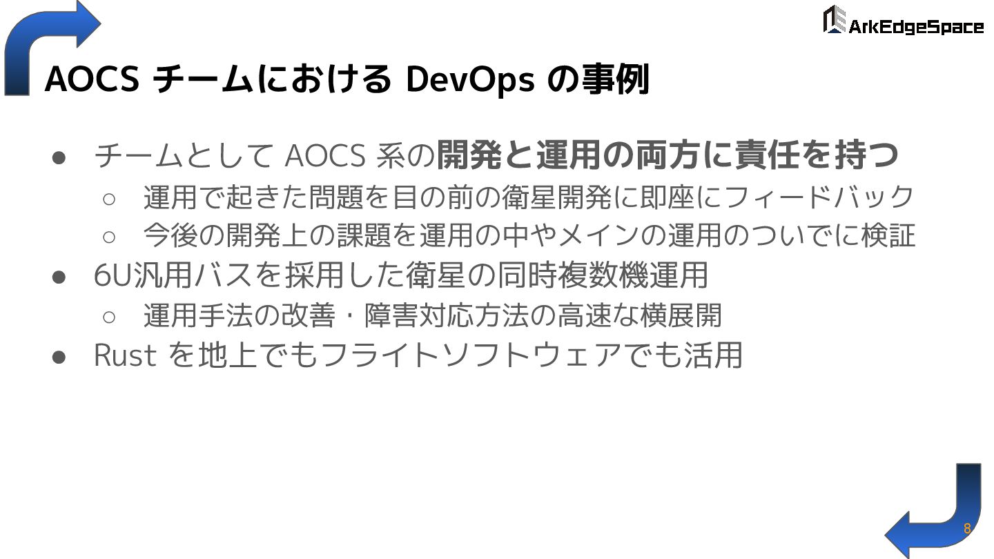 第69回宇宙科学技術連合講演会 11/25(1日目) OS-39 超小型衛星で切り開くビジネスと将来展望 (1)1A05 にて発表した、 『同時複数機開発・運用のDevOpsサイクル高速化のための取り組み 』のスライドです。