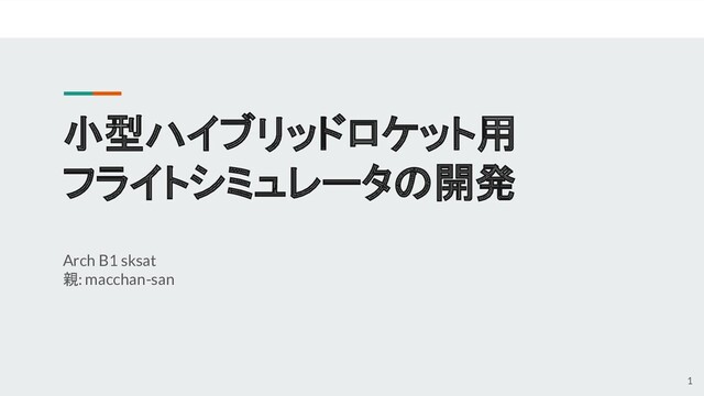 小型ハイブリッドロケット用 フライトシミュレータの開発 Arch B1 sksat 親: macchan-san 1