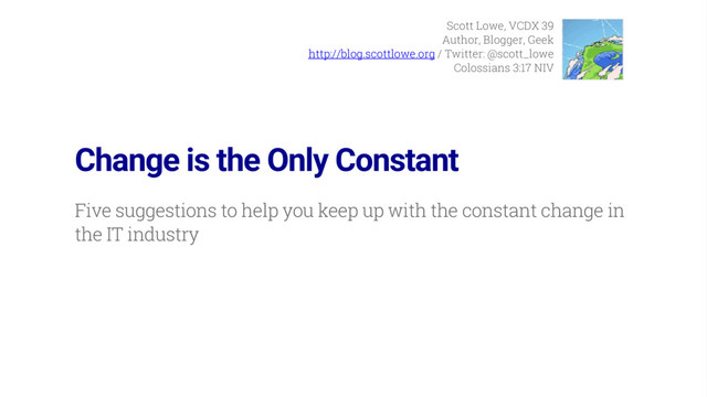 Blogger (11+ years at http://blog.scottlowe.org) • Author (7 books so far, 2 more in the works) • Speaker (Interop, VMworld, DevOps Networking Forum, OpenStack Summit, local meetups) • Podcaster (The Full Stack Journey podcast) • Employee at VMware, Inc., on the CTO team for NSX