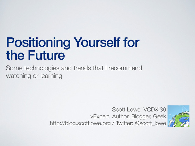 Technologies Worth Watching or Learning” • Presentation is available online at <https://speakerdeck.com/ slowe/three-technologies-worth-watching-or-learning> • This presentation is an update to that one • Attempts to answer the question, “How can I best position myself for future trends?” Some history