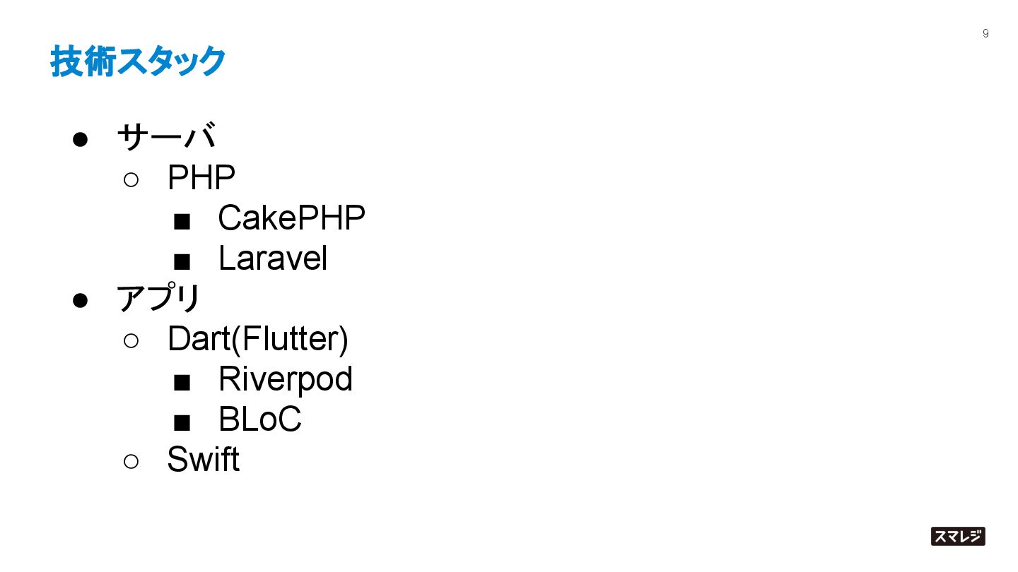 • サーバ ◦ PHP ▪ CakePHP ▪ Laravel • アプリ
