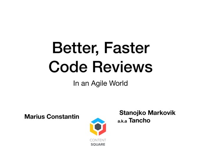 Everyone knows you need to do code reviews, but with more than 2-3 developers, and in a sprint with 10+ tasks in the backlog, this is becoming an issue. This presentation will be about how we have managed to overcome this challenge and how we have made code reviews fast, efficient, and a part of our daily routine (without adding them to the list of tasks). We will emphasize on the Git approach and the methodologies around this and similar tools. We will share all our trials, fails and wins and discuss how we can make this work for you too.