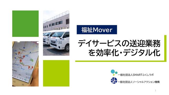 デイサービスの送迎業務 を効率化・デジタル化 一般社団法人SMARTふくしラボ 一般社団法人ソーシャルアクション機構 福祉Mover 1