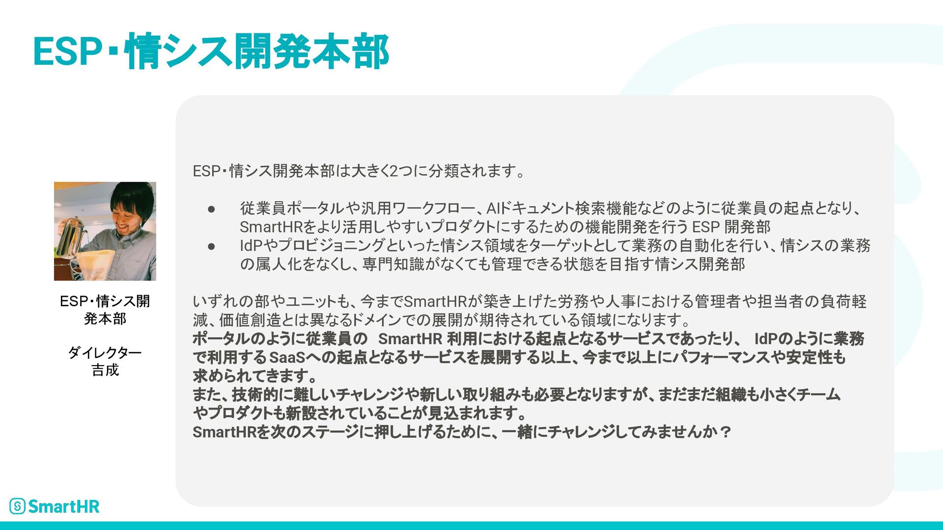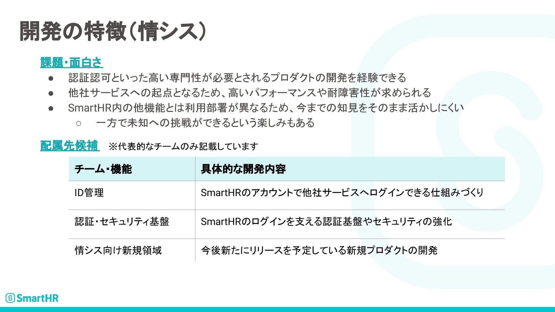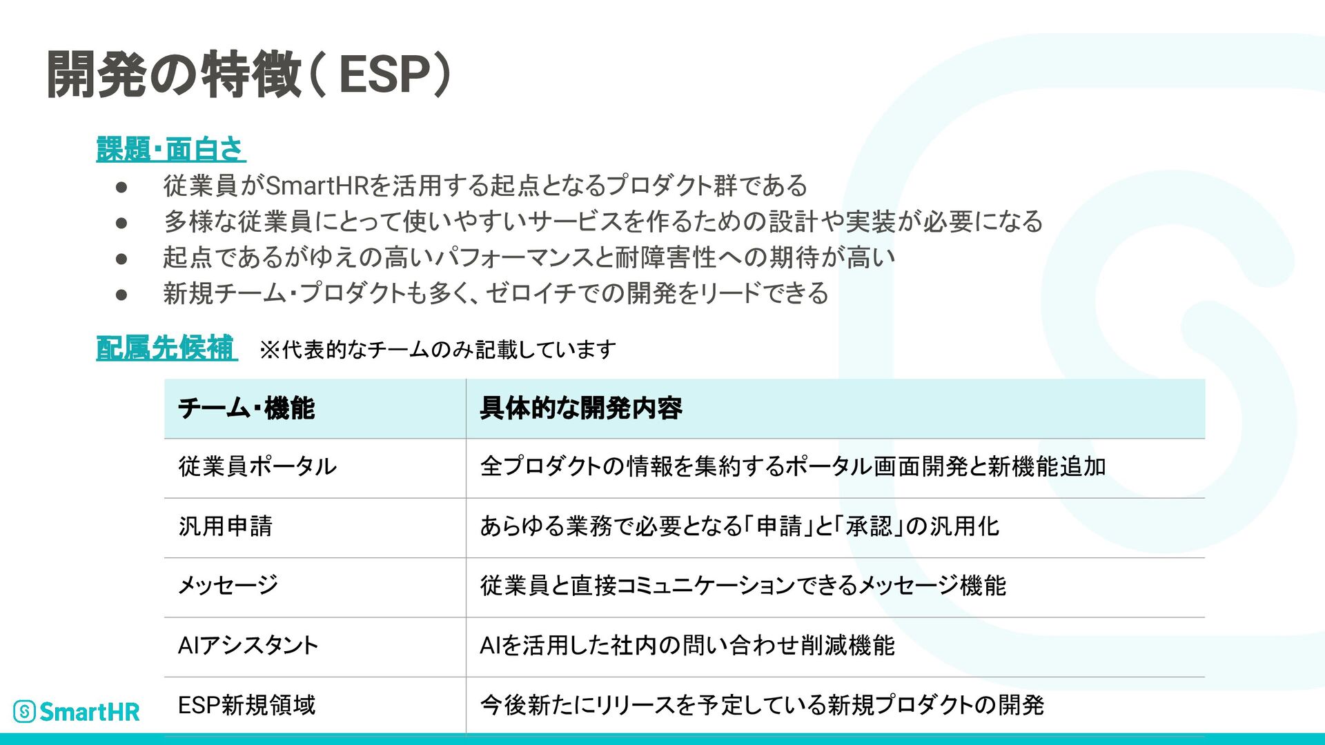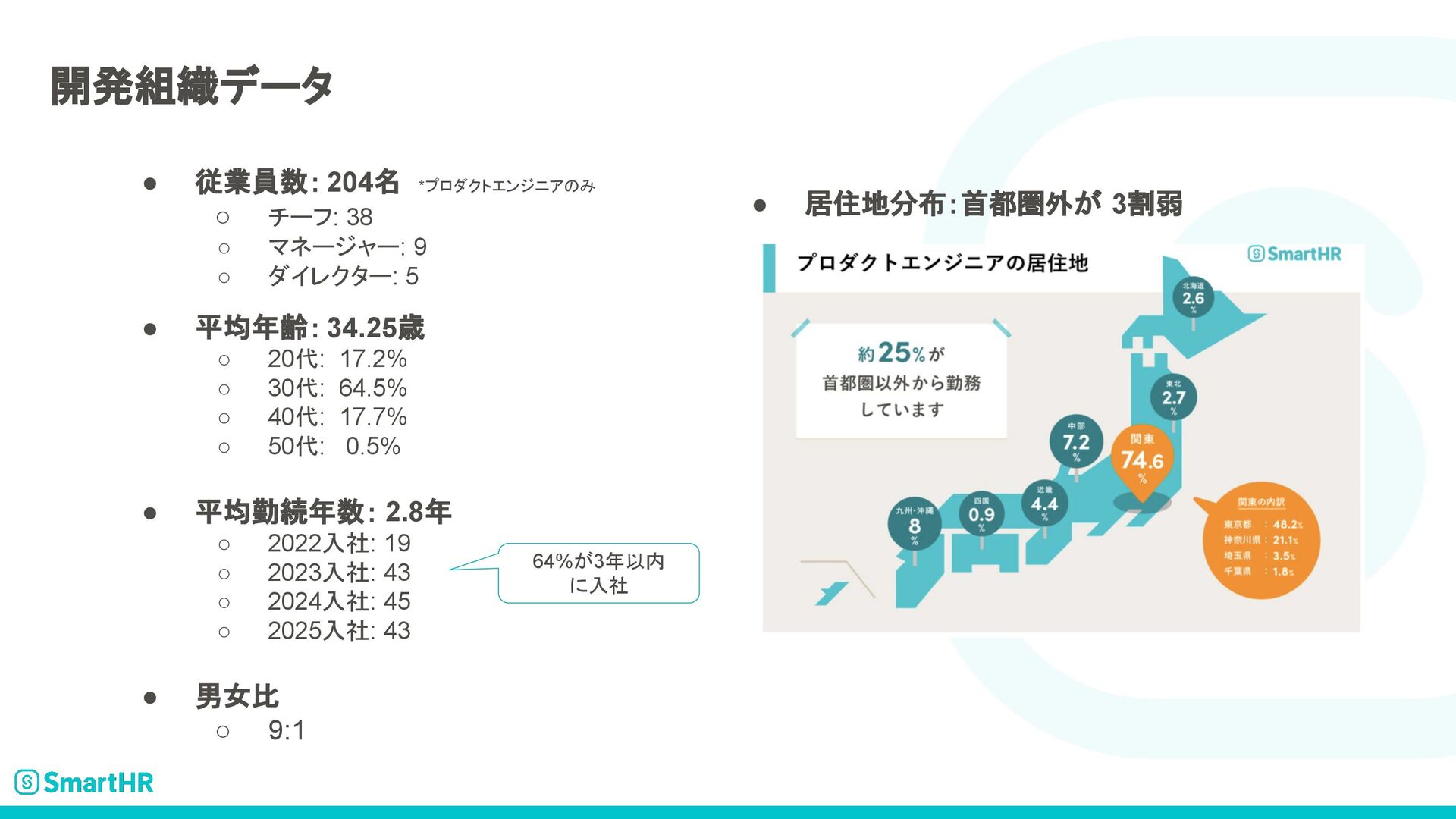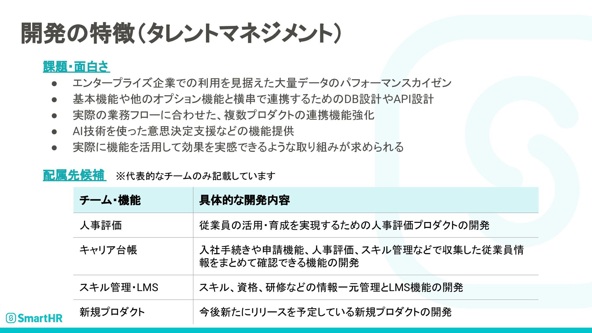SmartHRのプロダクトエンジニア求人について記載された資料です。