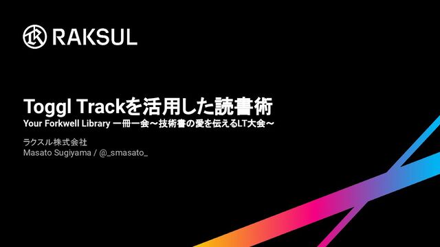 「Toggl Trackを活用した読書術」 Your Forkwell Library 一冊一会〜技術書の愛を伝えるLT大会〜 https://forkwell.connpass.com/event/295095/