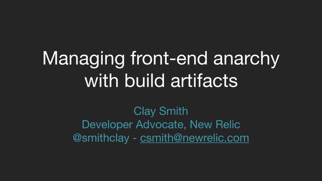 complicated and changes fast. • Complexity and constant change introduce new modes of failure. • Build artifacts simplify workflow. This talk is all about them.