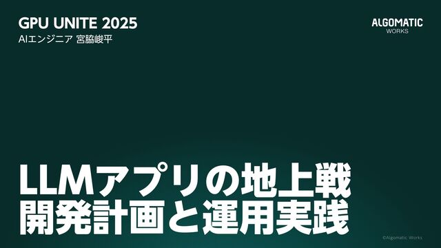 LLMアプリの地上戦開発計画と運用実践 / 2025.10.15 GPU UNITE 2025