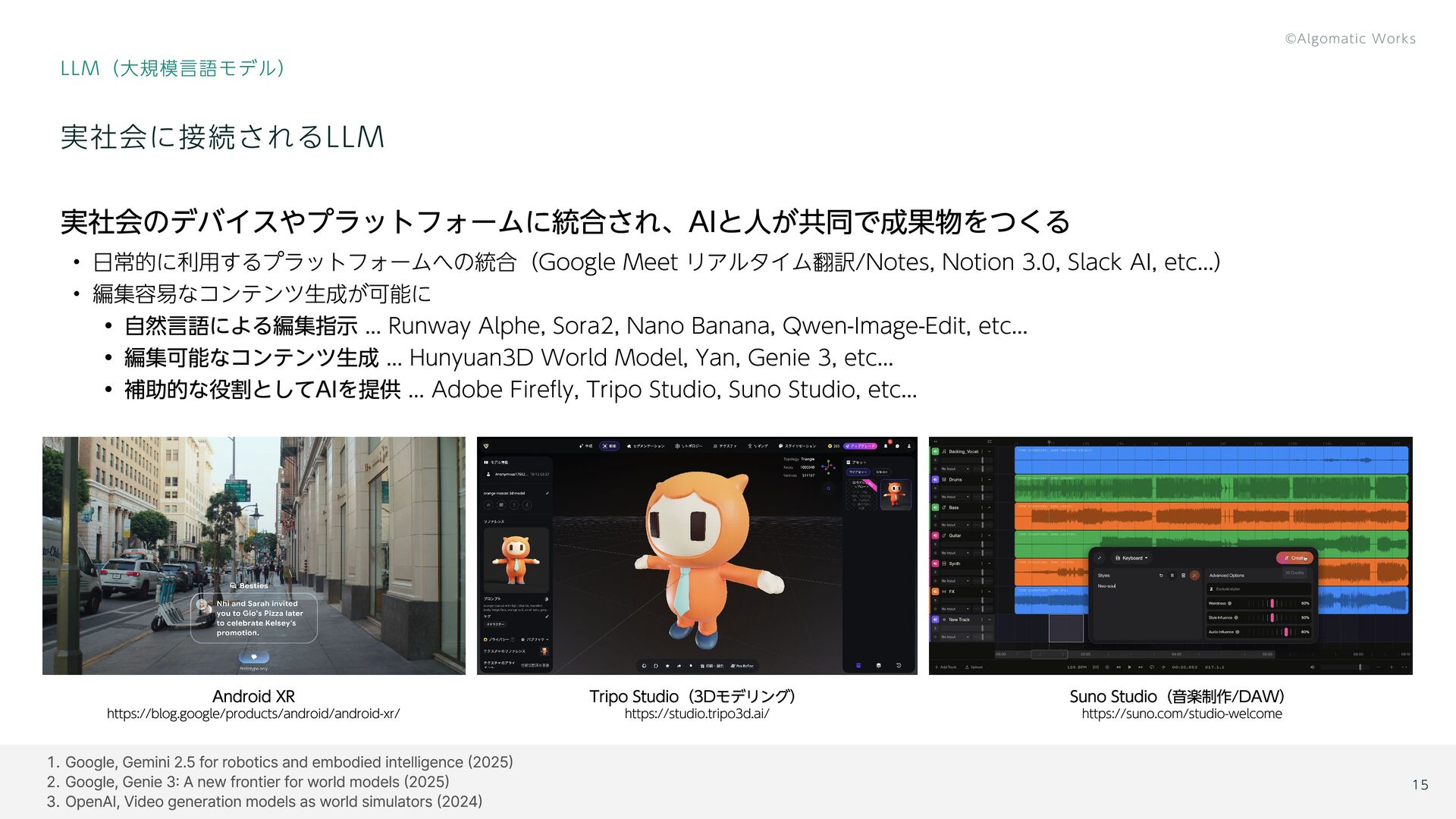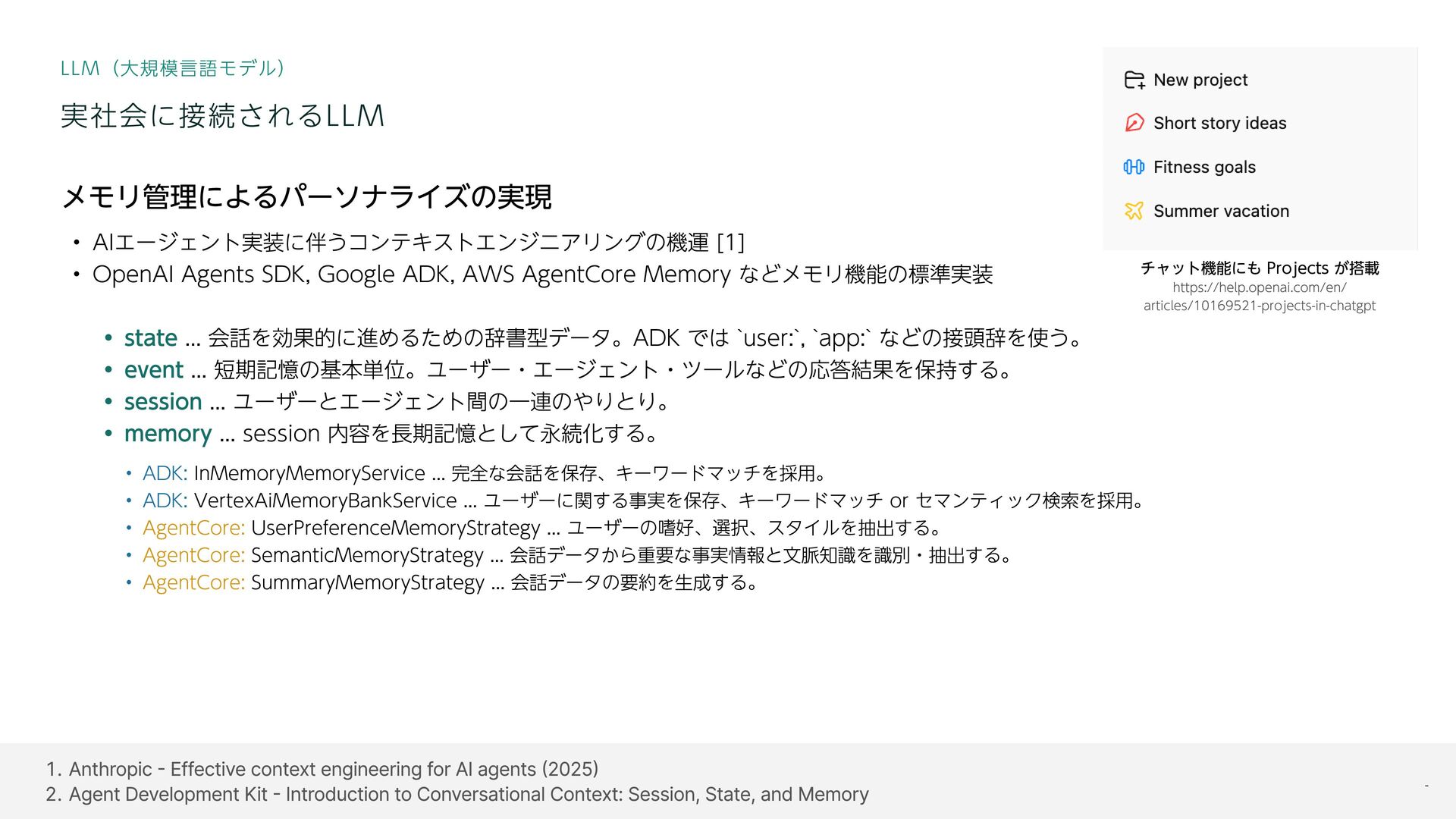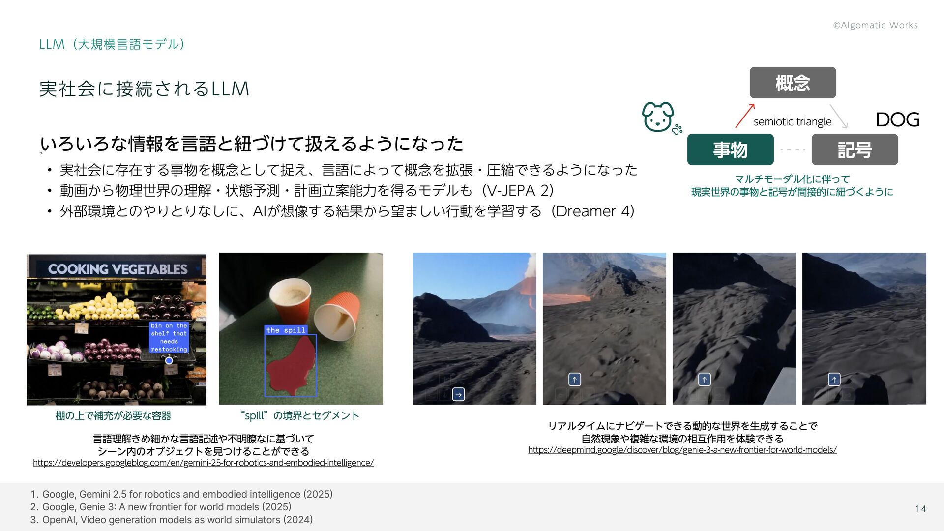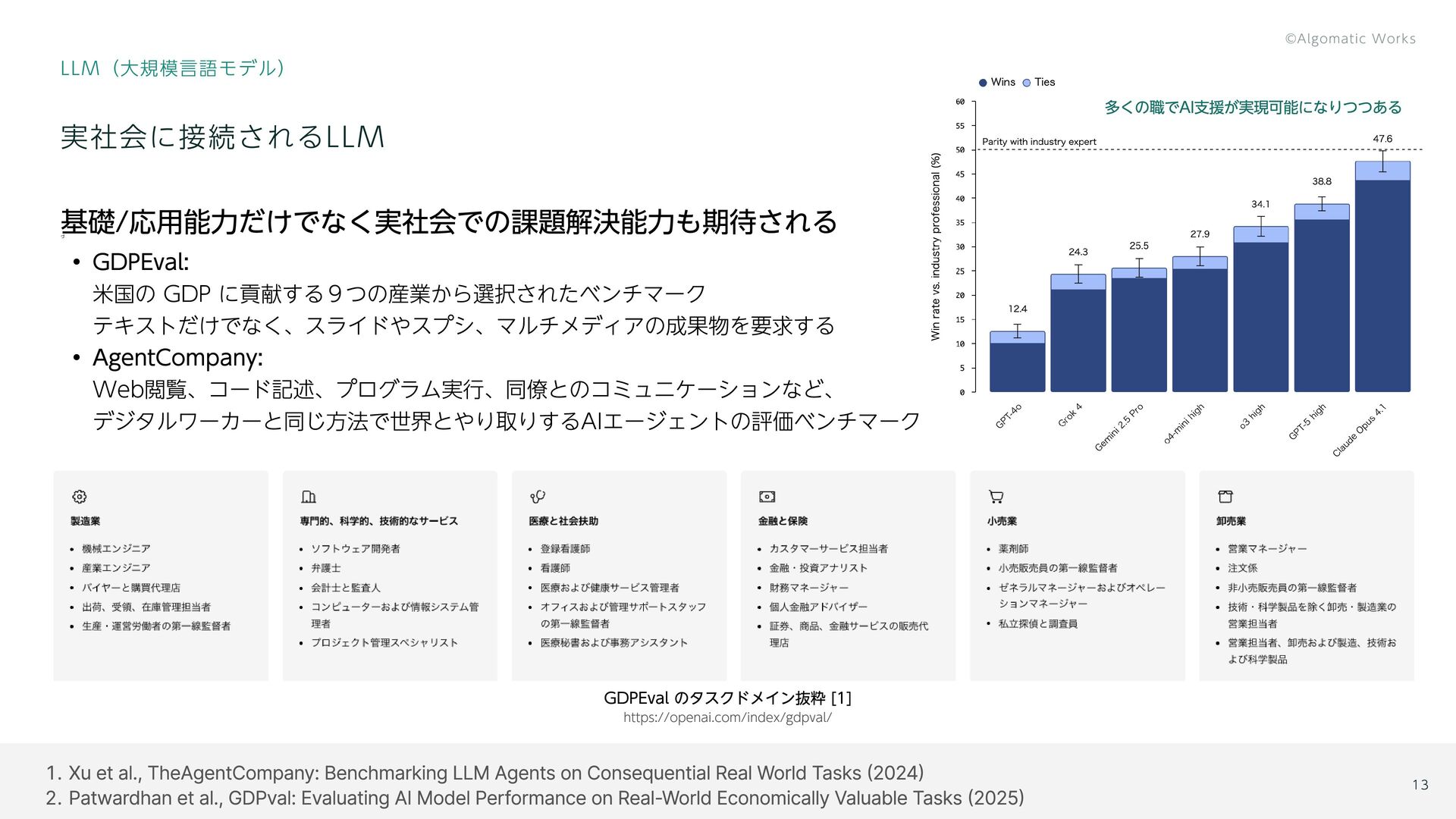 r m er (2022) , htt ps: // sp ea k erde ck . com / yus hi ku /20220 6 0 8_ss ii _ tran s f o r m er 清野 氏( 東北 大/理 研AIP) - よ り良 い Tran s f o r m er をつ くる (2022), htt ps: // sp ea k erde ck . com /b u t su giri/ yo ri l iang-itran s f o r m er wo t uku r u 荒居 氏/ 本田 氏( リク ル ート) - 基 盤モデ ル と産業 (202 3 ), htt ps: // sp ea k erde ck . com /re c r u itengineer s /i c t _ t okyou ni v 岡崎 氏( 東工 大 ) - 大規模 言語モデ ル (202 3 ), htt ps: // sp ea k erde ck . com / c h okk an/ llm 岡崎 氏( 東工 大 ) - 大規模 言語モデ ル の脅威と驚 異 (202 3 ), htt ps: // sp ea k erde ck . com / c h okk an/202 3 0 3 2 7_ ri k en _llm 西田 氏, 西田 氏, 風戸 氏( N TT ) - 大規模 言語モデ ル 入門 (202 3 ), htt ps: // sp ea k erde ck . com / kyou n/ llm -intr o d uc ti o n- s e s 202 3 太田 氏( 電通 総 研) - LLMマ ル チエージェ ン トを 俯 瞰す る (202 3 ), htt ps: // sp ea k erde ck . com / m a s at o t o / llmm ar u tie z ient owo f u - k an- su r u PAKDD 202 3 , T2 : A G ent l e I ntr o d uc ti o n t o Te c hn olo gie s B ehind L ang u age Mo de ls and Re c ent Ac hie v e m ent in C hat GP T, htt ps: // p a k dd2 3 . p a k dd. o rg/t u t o ria ls .ht ml# t2 岩 澤 氏( 東京 大 ) - 基 盤モデ ル の 技 術と展望 (202 3 ), htt ps: // sp ea k erde ck . com / yusuk e0 519 / js ai202 3 -t u t o ria l - j i- p an- mo der u n oj i- s h u -t oz han- w ang 岡崎 氏( 東工 大 ) - 大規模 言語モデ ル の 開 発 (202 4 ), htt ps: // sp ea k erde ck . com / c h okk an/ js ai202 4 -t u t o ria l - llm いもす 氏( P F N) - LLMの現在 (202 4 ), htt ps: // sp ea k erde ck . com /b u t su giri/ yo ri l iang-itran s f o r m er wo t uku r u 田中 氏( N TT ) - 大規模 言語モデ ル によ る 視覚・言語の 融 合 (202 4 ), htt ps: // sp ea k erde ck . com /r yo tatana k a/ l arge- v i s i o n- l ang u age- mo de ls 塩野 氏 ( 東北 大) - L arge V i s i o n L ang u age Mo de l ( LVLM ) に関す る 最新知見まとめ ( P art 1 ), htt ps: // sp ea k erde ck . com / o ne ly7 / l arge- v i s i o n- l ang u age- mo de l - lvlm -nig u an- su r uzu i-xin- z hi- j ian- m at om e- p art- 1 太田 氏( 電通 総 研) - ICL R202 4 LLMエージェ ン トの研究動向 (202 4 ), htt ps: // sp ea k erde ck . com / m a s at o t o /i cl r202 4 - llm e z ient o n oy an- j i u -d o ng-xiang 太田 氏( 電通 総 研) - W ee kly AI A gent s N e ws! (202 4 ), htt ps: // sp ea k erde ck . com / m a s at o t o / w ee kly -ai-agent s -ne ws 和地 氏( LIN Eヤ フー) - N e u r IPS -2 3 参加報告 + DPO 解説 (202 4 ), htt ps: // sp ea k erde ck . com /a k if um i _w a c hi/ne u ri ps -2 3 - c an- j ia-ba o -ga o - plus -d po - j ie- s h uo 伊 藤 氏, 栗田 氏( M i c r oso ft ) - LLMOps : ΔMLOps (202 4 ), htt ps: // sp ea k erde ck . com / s h u ntait o / llmops -d mlops 高橋 氏( N TT ) - 情報科学特別講義Ⅰ 生成モデ ル の 基 礎と応用 (202 4 ), htt ps: // sp ea k erde ck . com /ta k aha s hihir os hi/generati v e- mo de ls , B en j a m in, 横井 , 小林 - 言語モデ ル の内部機序 解析と解釈 , htt ps: // sp ea k erde ck . com /e um e sy /ana lys i s_ and _ inter p retati o n _o f _l ang u age _mo de ls 横井 氏 (国 語研 / 東北 大/理 研AIP) - コーパスを丸呑みしたモデ ル から言語の何がわか る か , htt ps: // sp ea k erde ck . com /e um e sy / w hat- c an- l ang u age- mo de ls - sw a llow ing- co r po ra-te ll - us -ab ou t- l ang u age a s a p 氏 - D ee pS ee k -R 1の論文から読み解 く 背景 技 術 (202 5 ), htt ps: // sp ea k erde ck . com / p er so nabb/dee ps ee k -r 1 n olu n- w en- k arad u - m i j ie- ku bei- j ing- j i- s h u 中鉢 氏( P F N) - PL a Mo の事後学 習 を支え る技 術 (202 5 ), htt ps: // sp ea k erde ck . com / p fn/202 51 00 1 - p fn- llm - s e m inar- pos t-training 鈴木 氏( 東京 大 ) - 新しいスケーリ ン グ則と学 習理 論 (202 5 ), htt ps: // sp ea k erde ck . com /tai j i _suzuk i/xin- s ii suk ering uz e-t o x u e-xi- l i- lu n 河原塚 ( 東京 大 ) - ロ ボット 基 盤モデ ル の最前線 (202 5 ), htt ps: // sp ea k erde ck . com /harad uk a/ m ir u 202 5 -ti yu t o riar uj iang- y an-r o b o t u t oj i- p an- mo der u n ozu i- q ian-xian B rain P ad - 【新卒研修資料】LLM・生成AI研修 / L arge L ang u age Mo de l・G enerati v e AI , htt ps: // sp ea k erde ck . com /brain p ad p r/ l arge- l ang u age- mo de l generati v e-ai 杉山 氏 ( C itade l AI / Clou d AI) - エージェ ン トの継続的改善のための メ トリクス再考 (202 5 ), htt ps: // sp ea k erde ck . com /a s ei/e z ient o n oj i- sok -de-gai- s han-n o ta m en om et o ri kusuz ai- k a o 門脇 氏 - R AGの精度向上手法、がっつ り まとめ【 202 5 年 】 , htt ps: // z enn.de v / k n owl edge s en s e/arti cl e s / 148 dfe2 c a 1 d 146 5 8