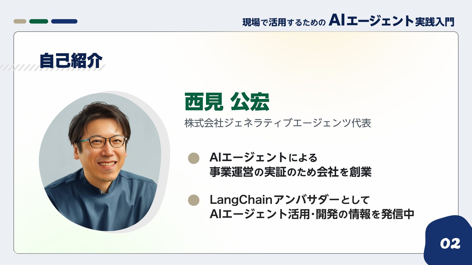 事業運営 の 実証 のため 会社 を 創業 LangChain アンバサダー として 02 自己紹介
