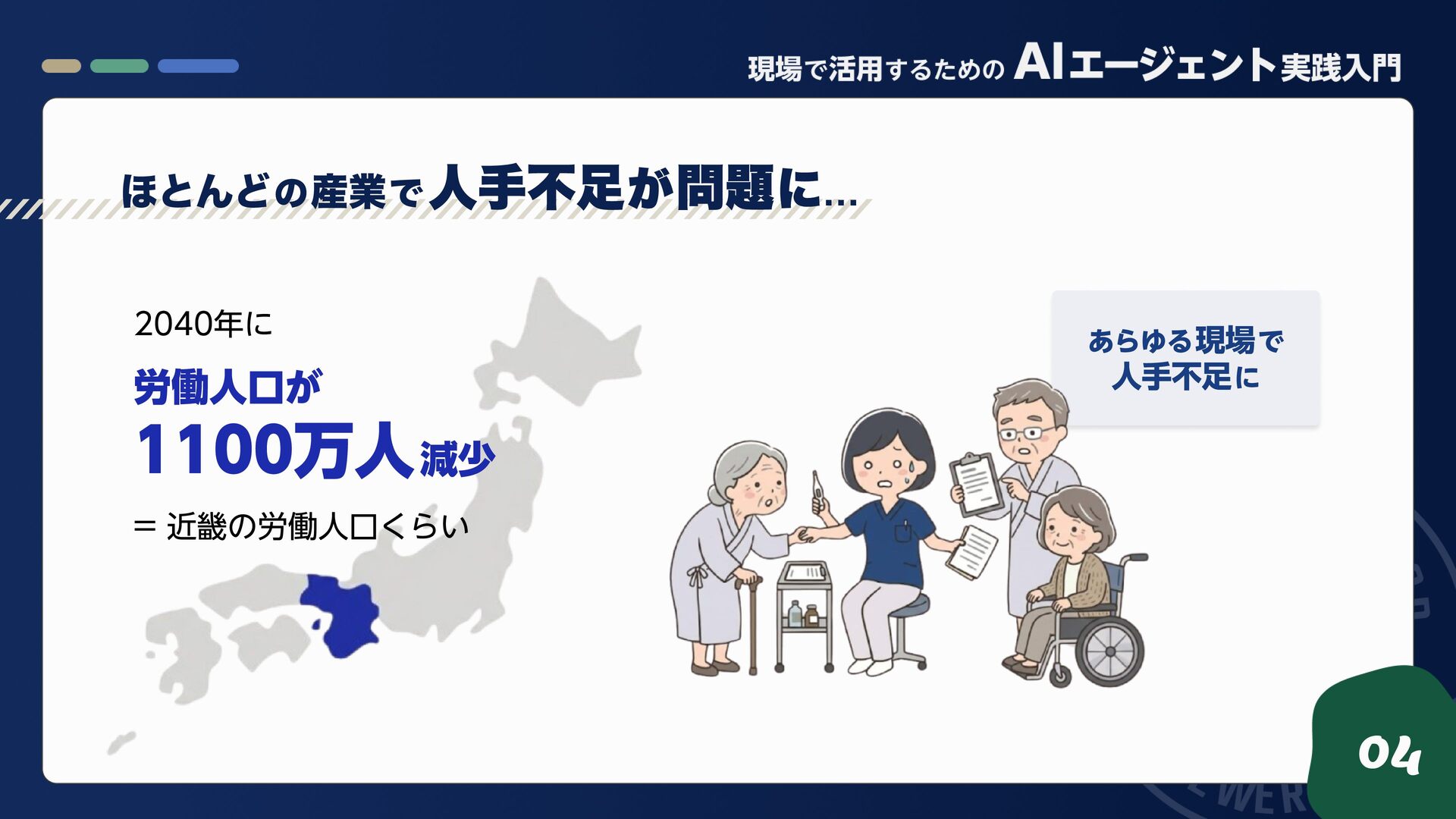 2. 1100万人 減少 労働人口が = 近畿の労働人口くらい 2040年に 04 ほとんど の 産業