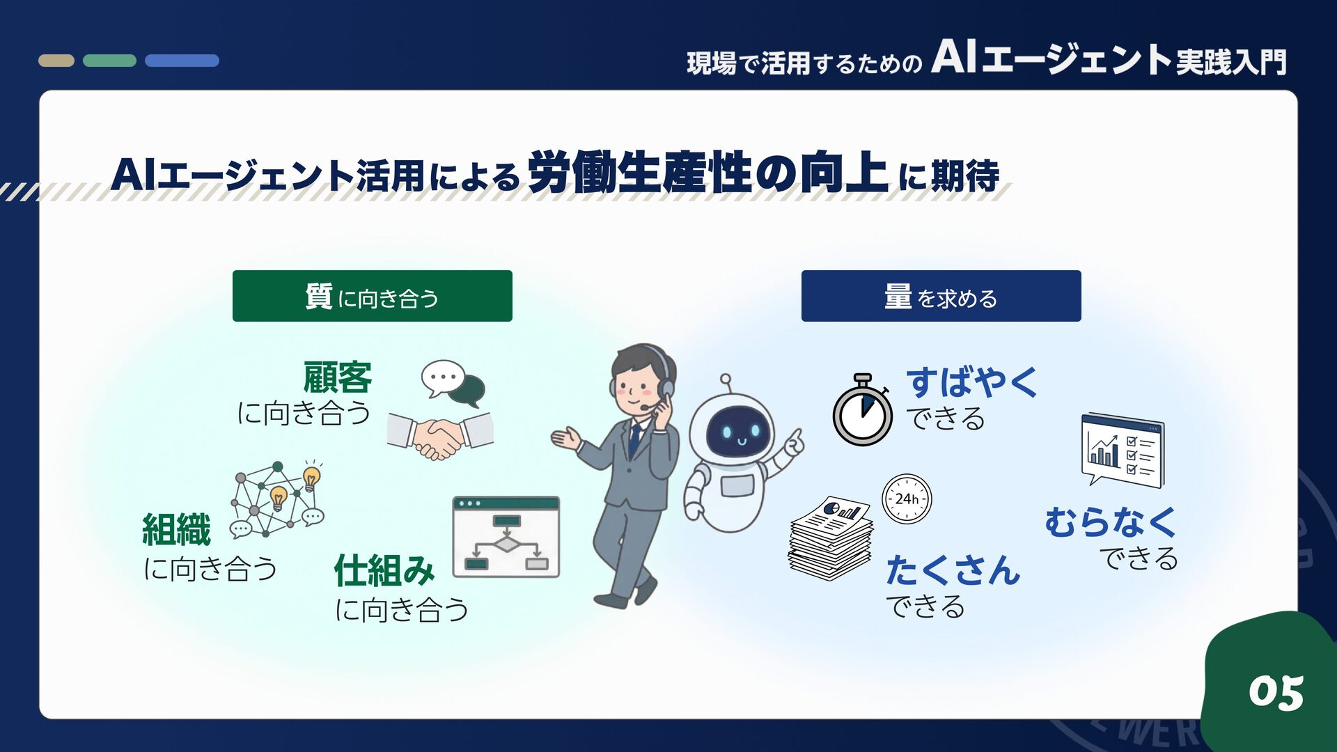 組織 に向き合う 05 AIエージェント活用 による 労働生産性 の 向上 に 期待 質 に向き合う 量 を求める