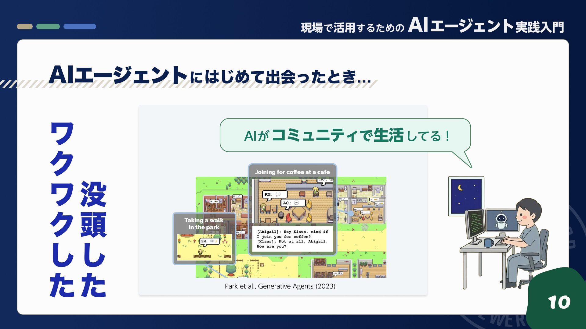 7. 10 Park et al., Generative Agents (2023) ワ ク ワ