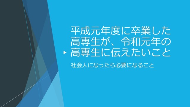 平成元年度に卒業した 高専生が、令和元年の 高専生に伝えたいこと 社会人になったら必要になること
