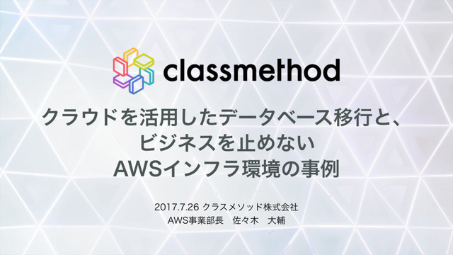 2017/7/19(水)に開催された「ZDNet Japan x TechRepublic Japan & AWS Partner Network 5週連続セミナーシリーズ データベース編 導入事例から考える--なぜ今、クラウドDBが注目されるのか?」での登壇資料