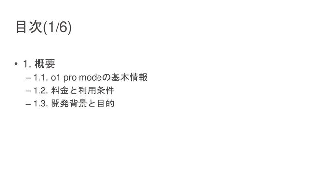 目次(1/6) • 1. 概要 – 1.1. o1 pro modeの基本情報 –