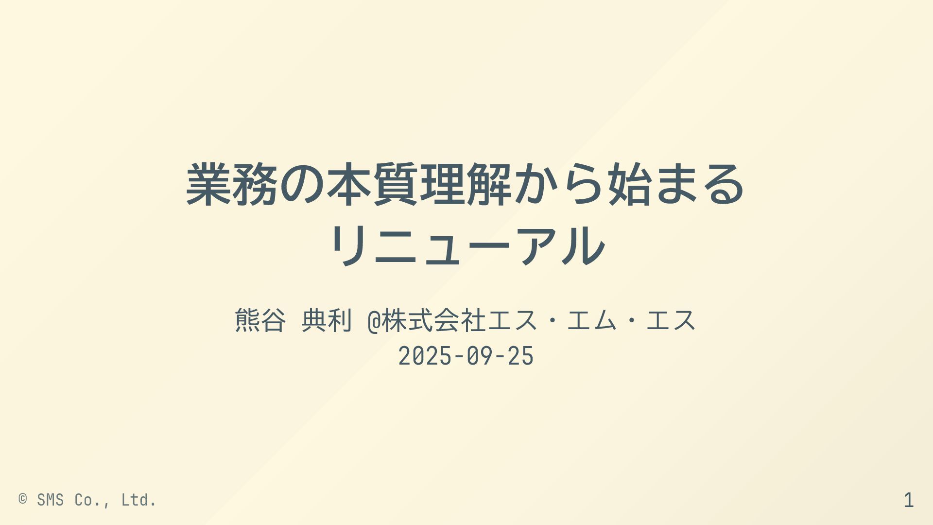 業務の本質理解から始まる リニューアル 熊谷 典利 @株式会社エス・エム・エス 2025-09-25 ©︎ SMS Co., Ltd.