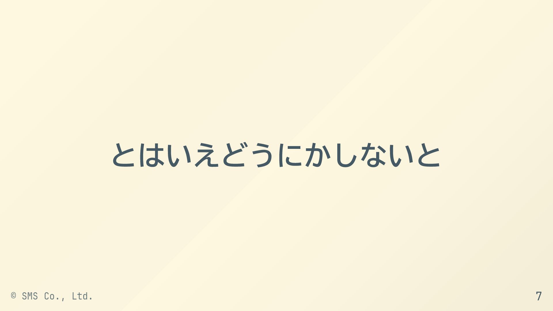 とはいえどうにかしないと ©︎ SMS Co., Ltd. 7