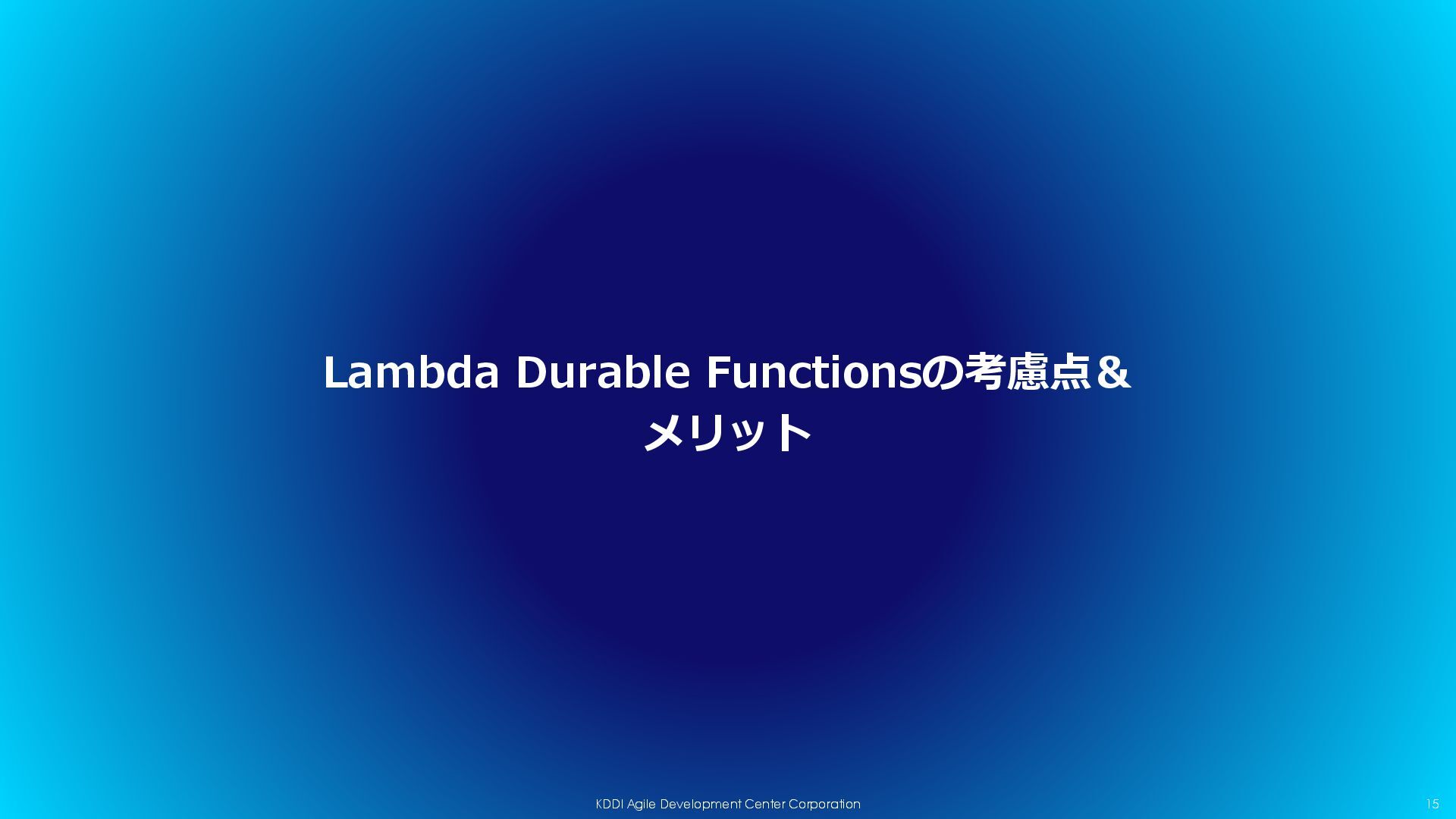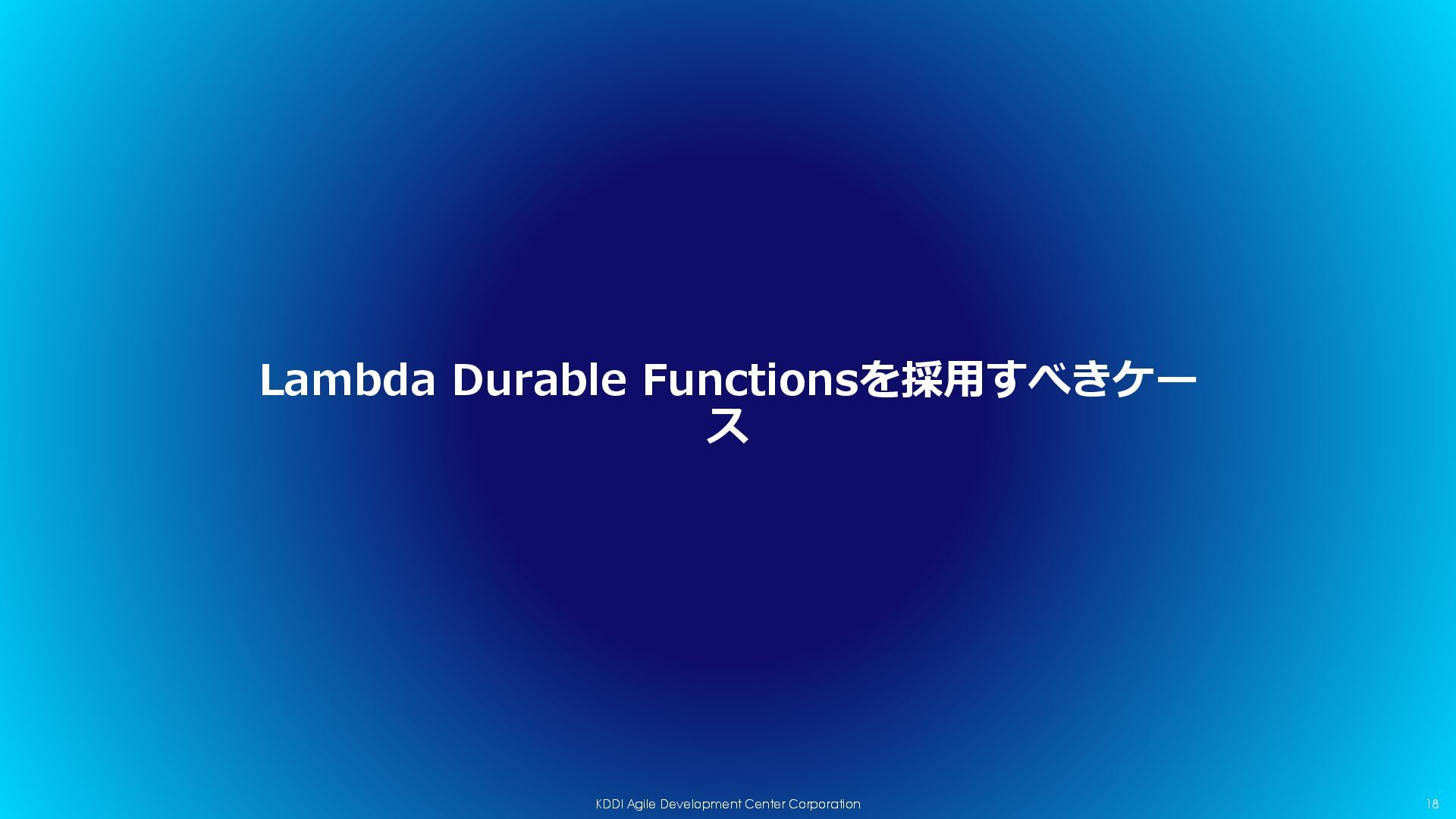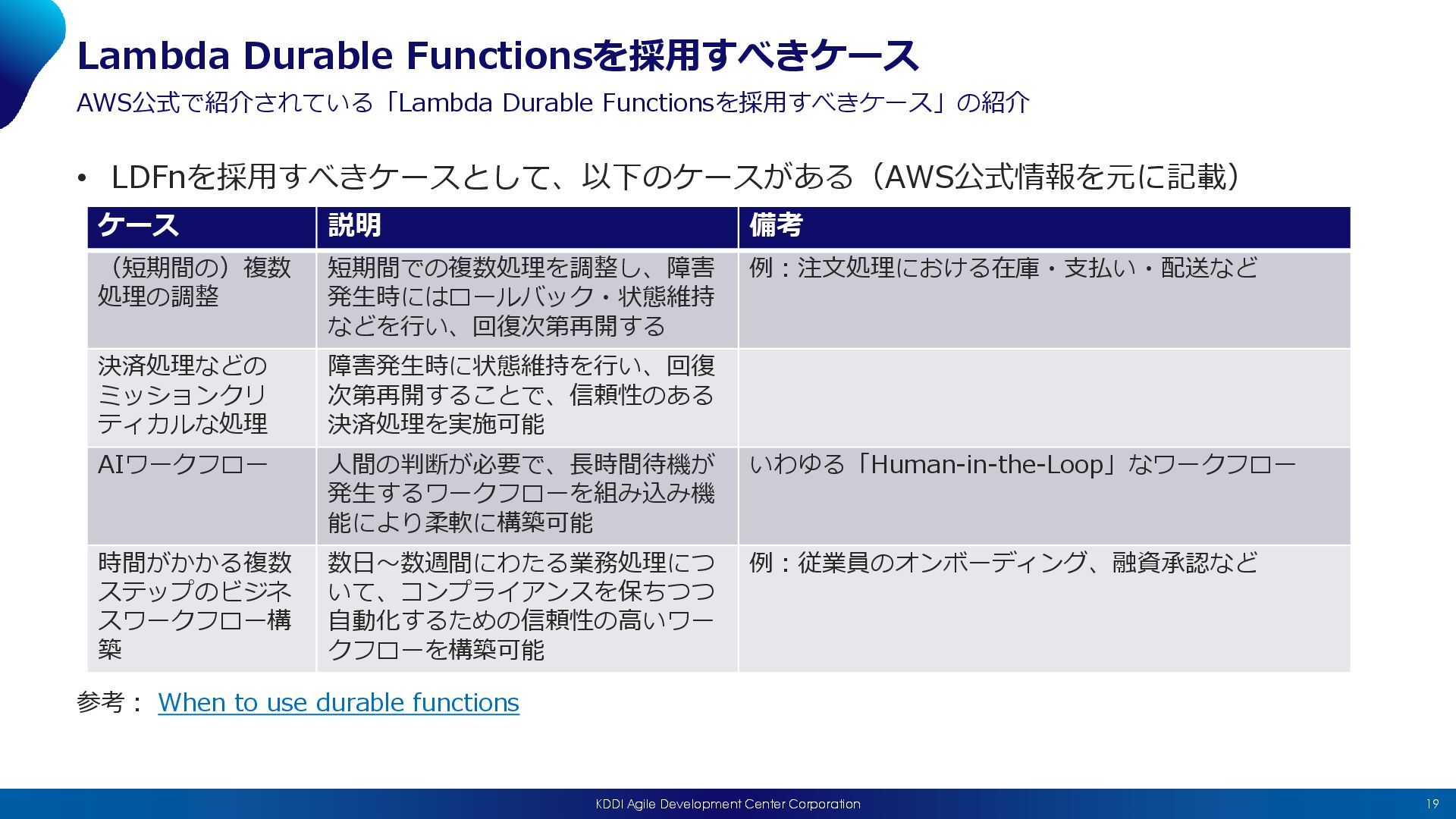 14. 19 KDDI Agile Development Center Corporation Lambda Durable Functionsを採用すべきケース AWS公式で紹介されている「Lambda