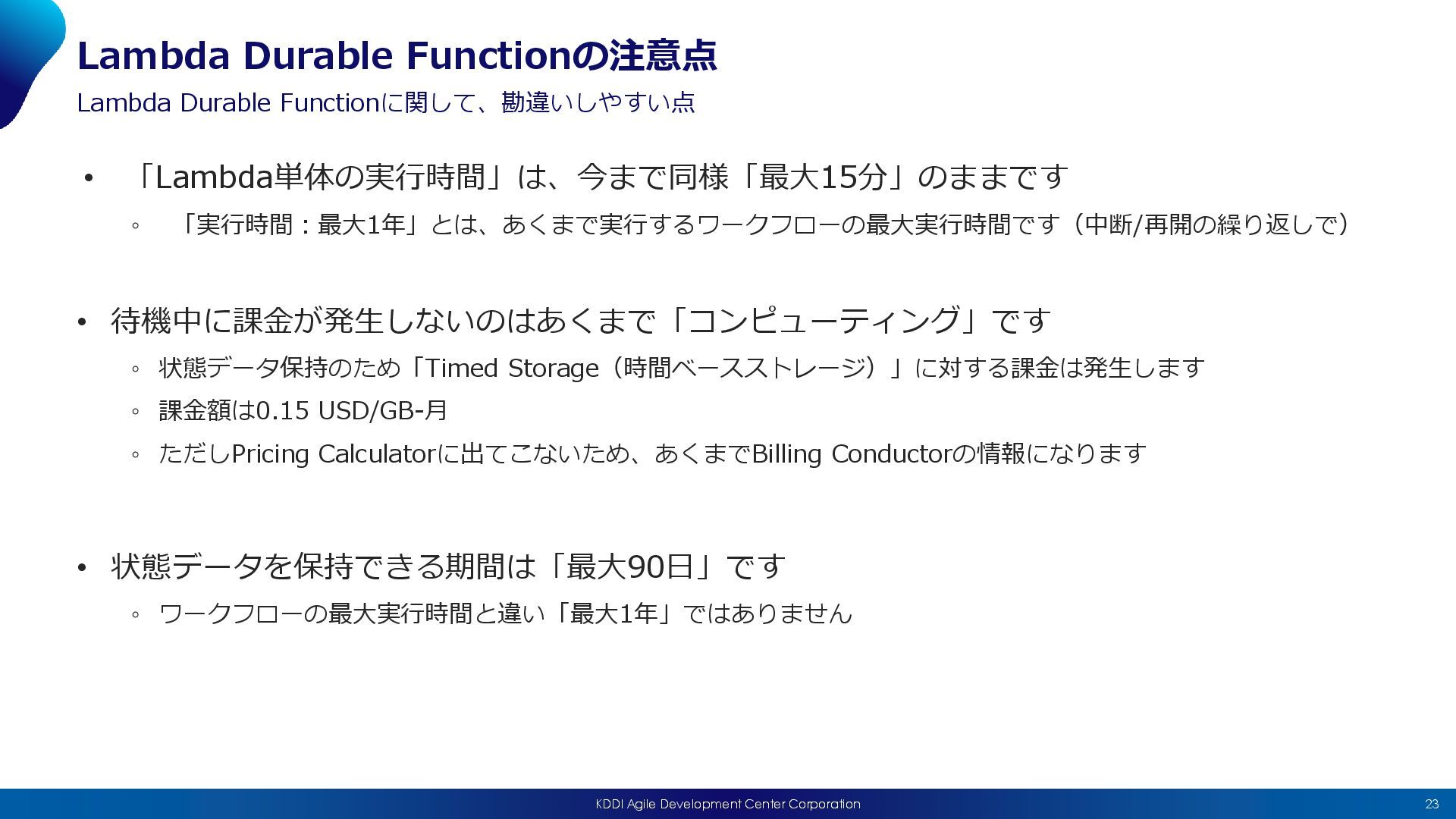 16. 23 KDDI Agile Development Center Corporation Lambda Durable Functionの注意点 Lambda