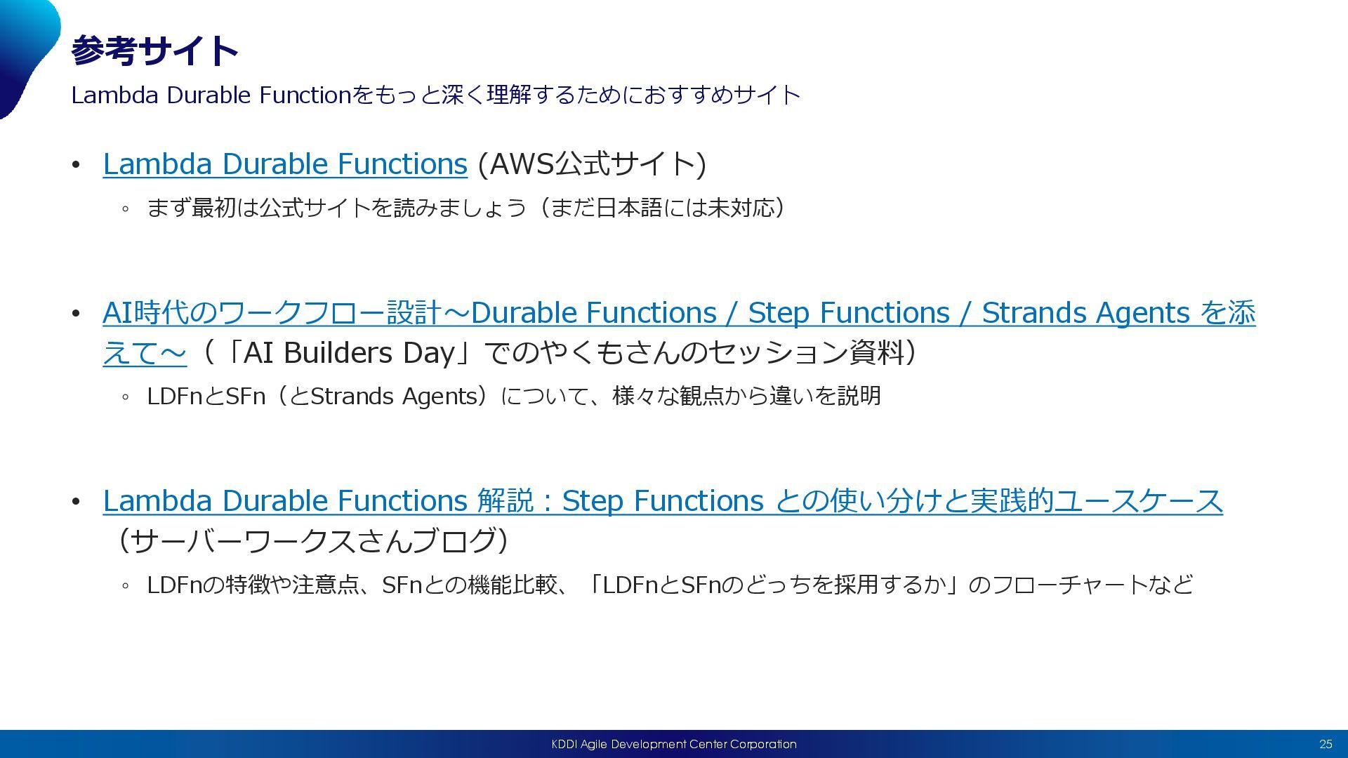 18. 25 KDDI Agile Development Center Corporation 参考サイト Lambda Durable Functionをもっと深く理解するためにおすすめサイト