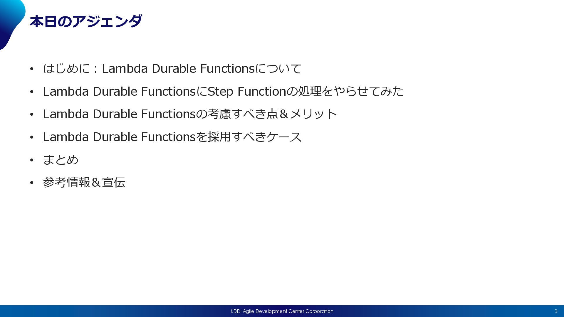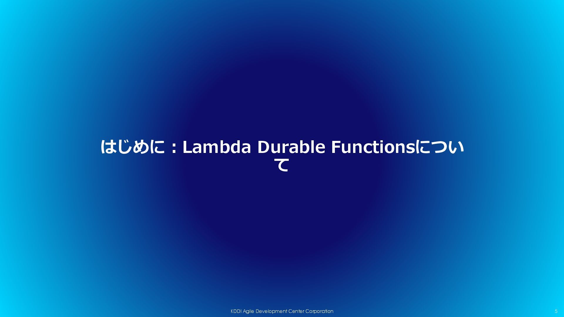 4. 3 KDDI Agile Development Center Corporation 本日のアジェンダ • はじめに:Lambda Durable