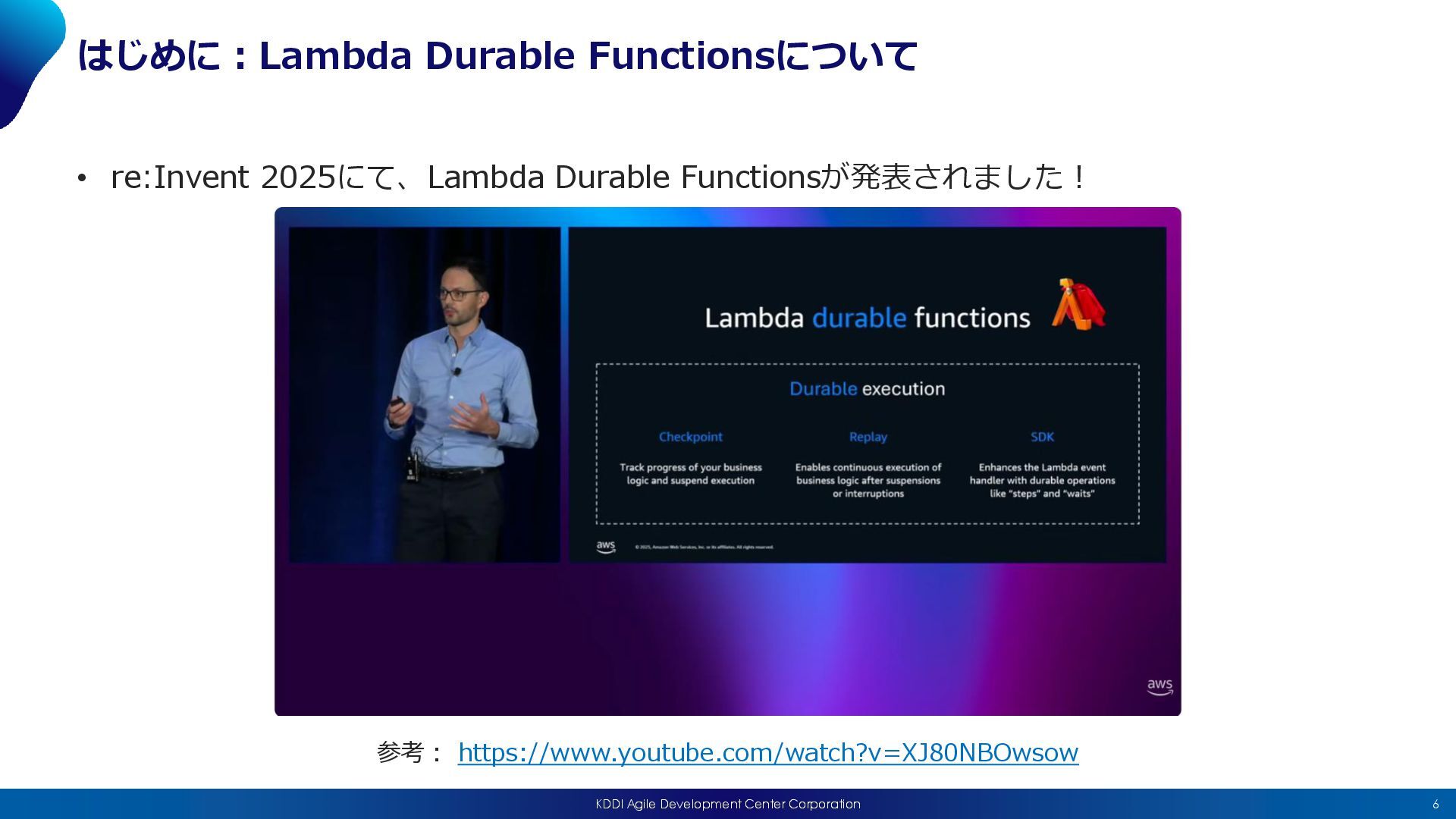 6. 6 KDDI Agile Development Center Corporation はじめに:Lambda Durable Functionsについて •