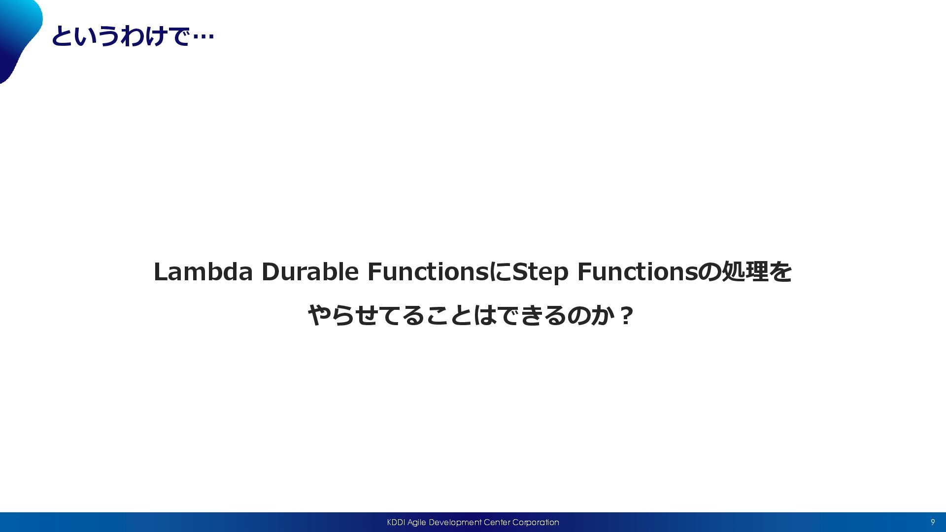 9. 9 KDDI Agile Development Center Corporation Lambda Durable FunctionsにStep Functionsの処理を